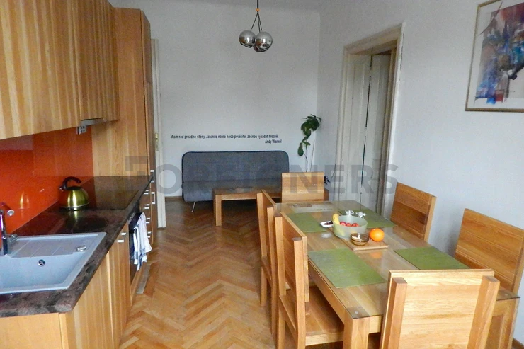 The monthly rent is 14 000 CZK including utilities, services and the Internet connection. The refundable deposit is 14 000 CZK.