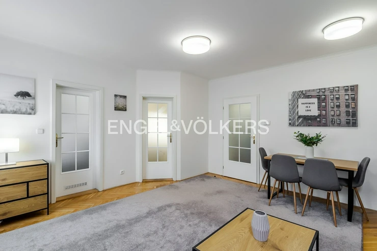 We are offering a fully furnished 3+1 apartment for rent, located on the 2nd floor of a 1930s apartment building in the prestigious Hanspaulka neighbourhood of Prague 6.