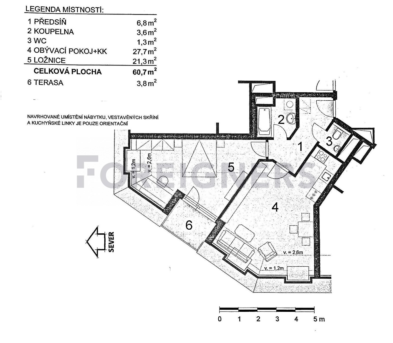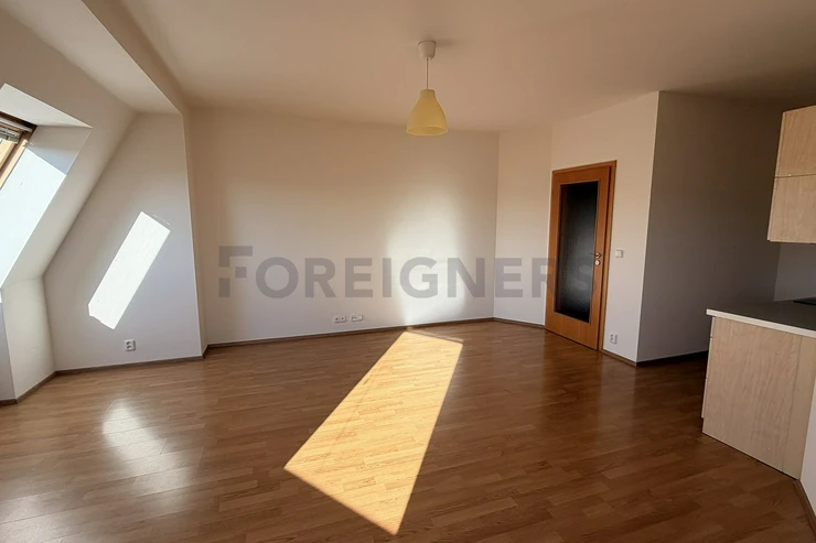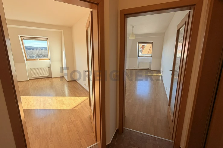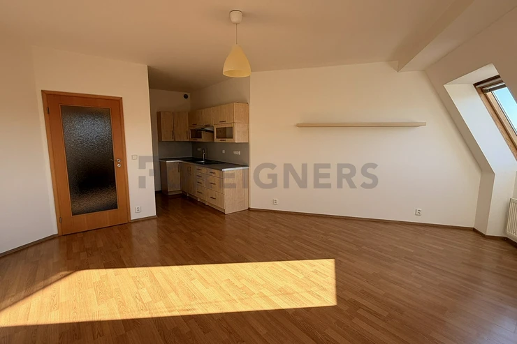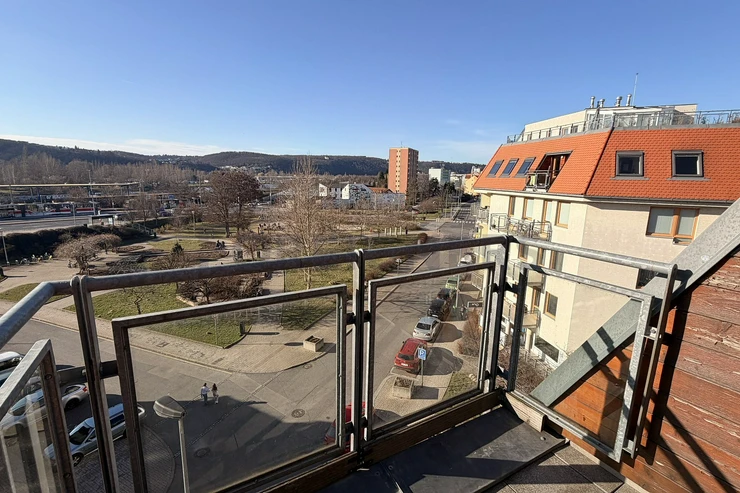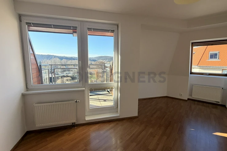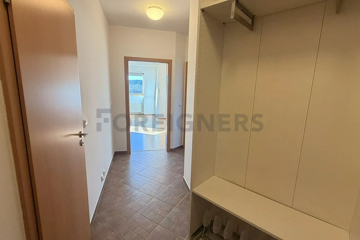 We are offering for rent a bright 2+kk apartment with a terrace and a total area of 61 m², situated on the 4th floor of a modern building with an elevator in Prague 4 – Modřany, Komořanská street.