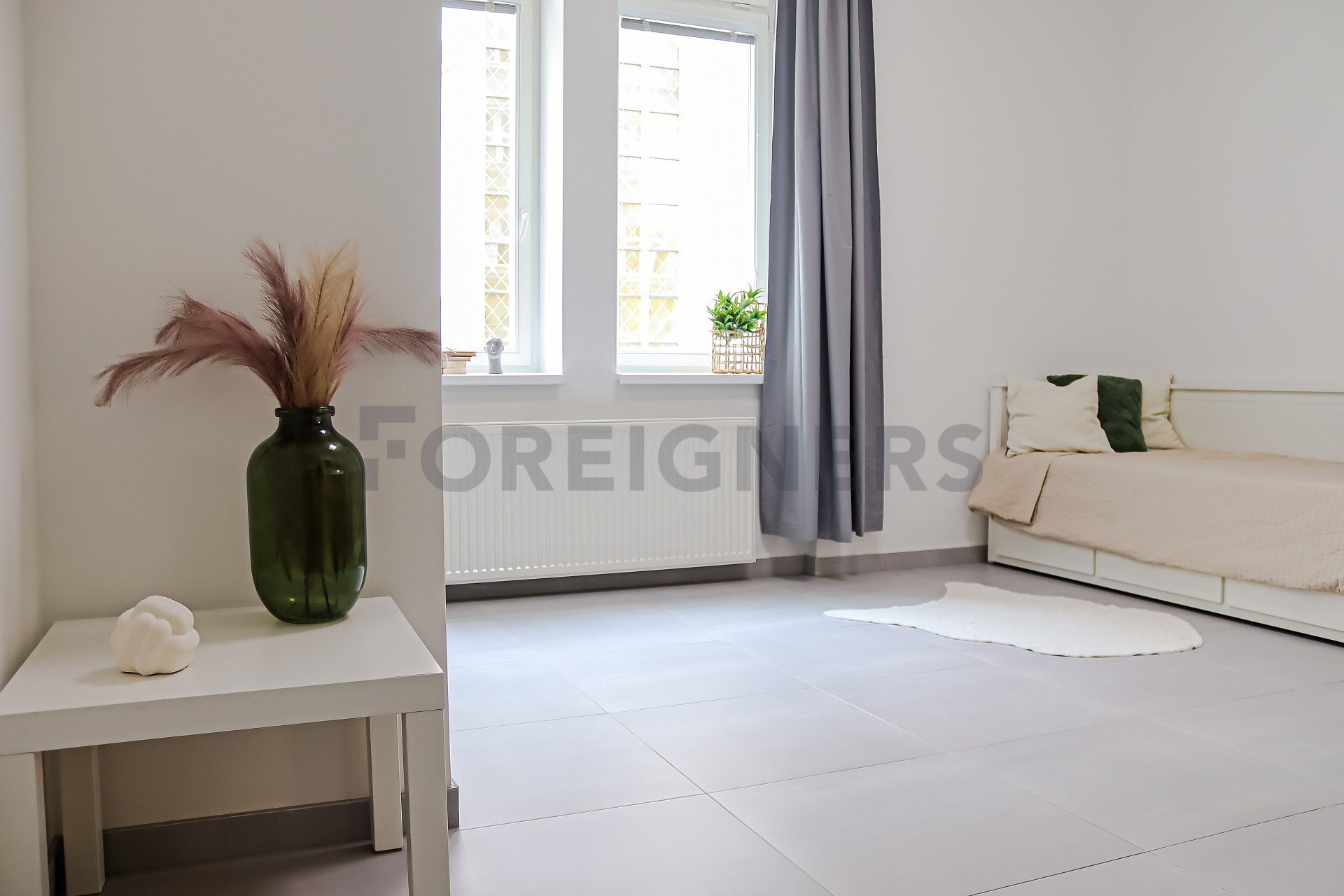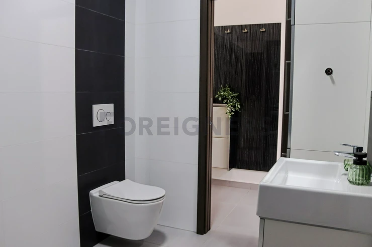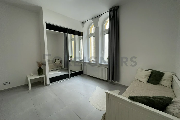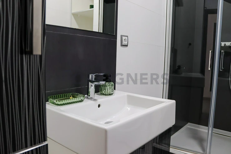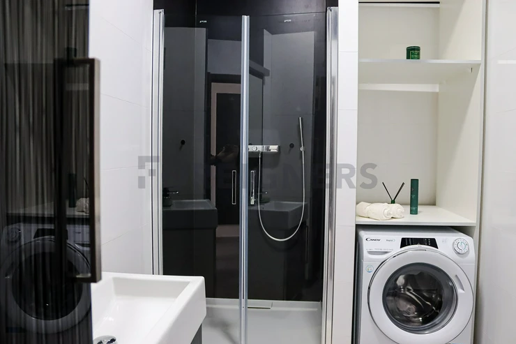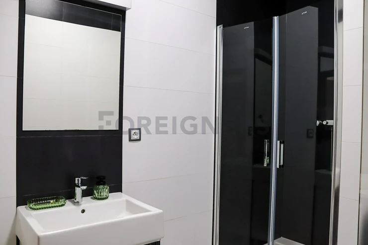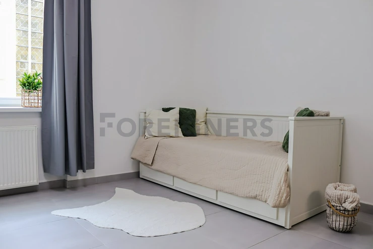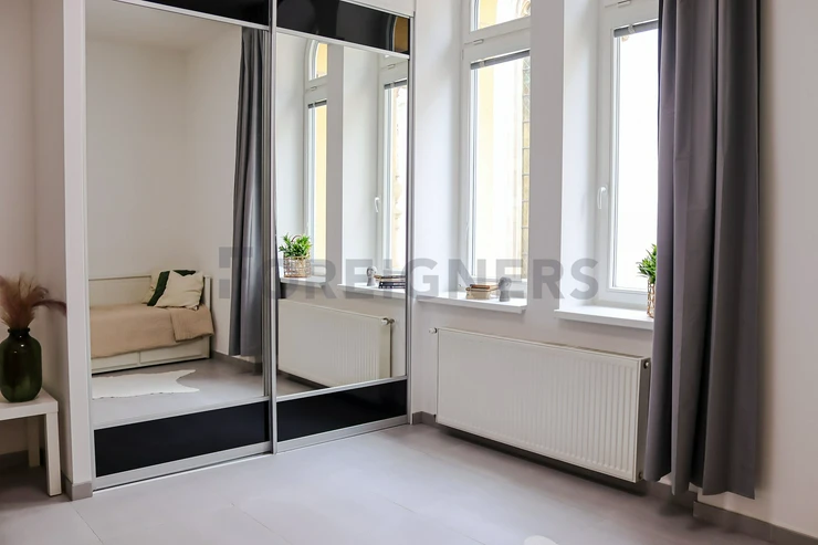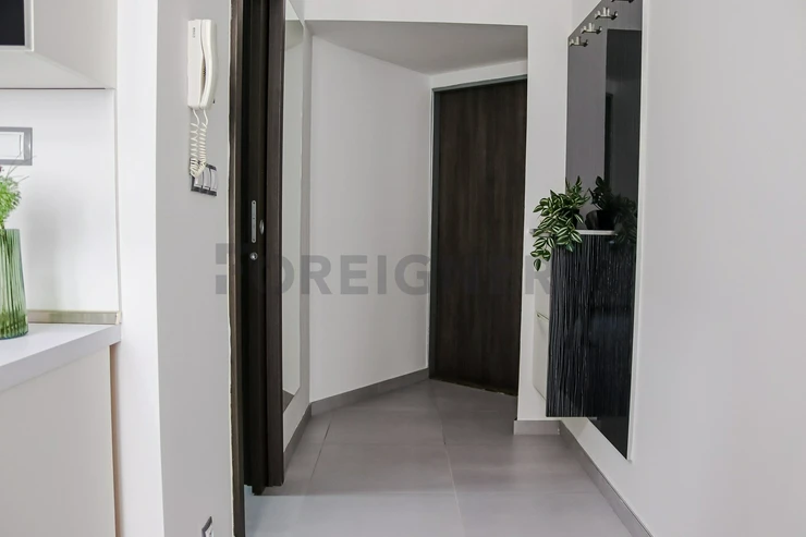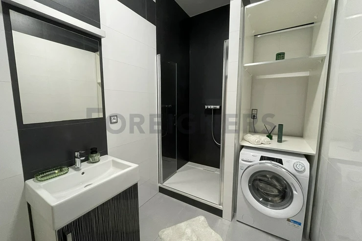 This flat is offered partly furnished where the kitchen unit is equipped with stove, oven, hood, microwave, dishwasher, fridge with the freezer and built-in wardrobe. There´s an extra place which can be used as the storage room. The bathroom is equipped with a hydro-massage shower corner, sink, toilet and washing machine. The apartment has A/C! The landlord is willing to furnish the apartment after agreement!