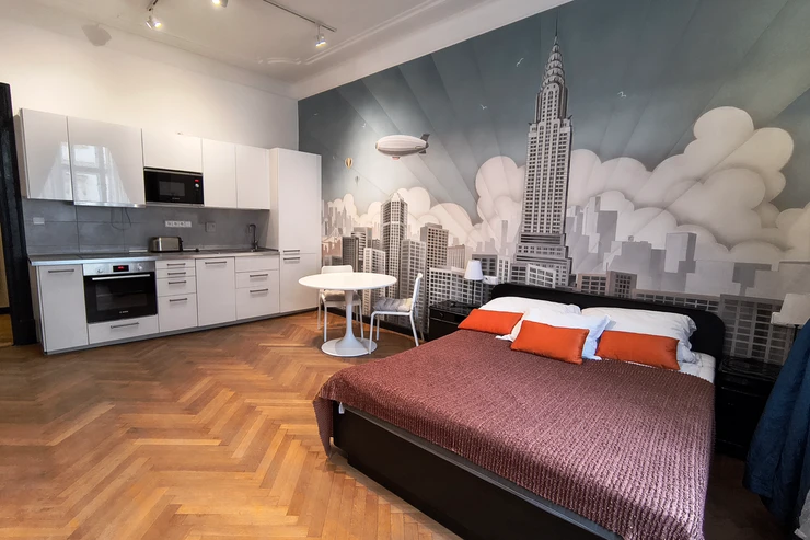 Long-term rental - designer studio 1+kk (31 m²) with jacuzzi in the center of Prague (no agency fee)