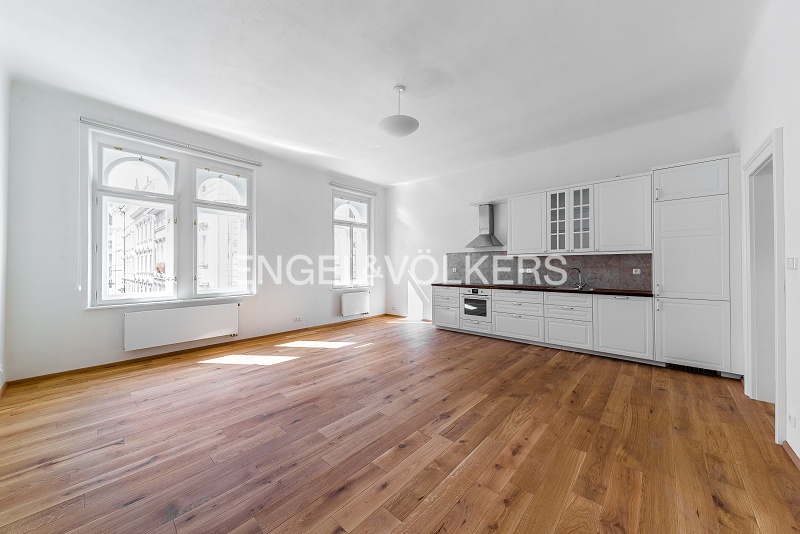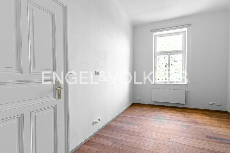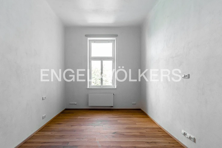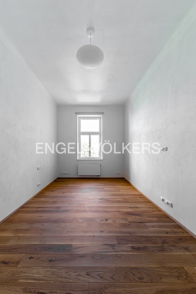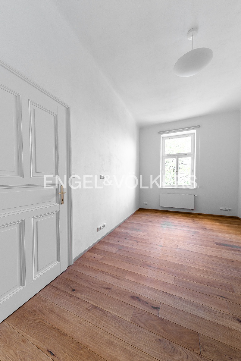 The renovation took care to preserve the period features of the building and the apartment. Only high-quality materials were used in the renovation of the apartments, such as solid oak flooring, high-quality tiles, sanitary ware, replica doors, new casement windows, and designer lighting from Spain.