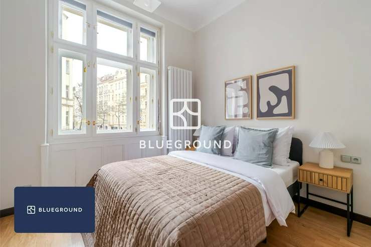 Blueground offers a spacious 84 m² 4+kk apartment in the heart of the Jiřího z Poděbrad area, designed for both productive and comfortable living. Enjoy flexible stays from one month to a year, dedicated workspaces, high-speed Wi-Fi, and an atmosphere that reflects the charm of this historic neighborhood.