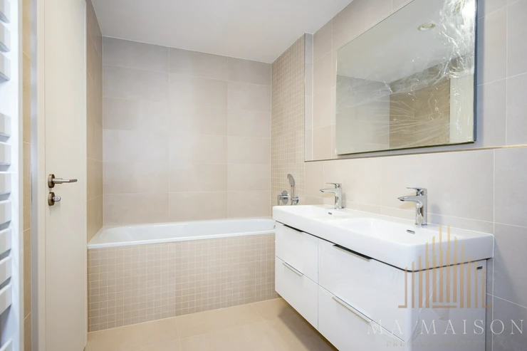 There are modern residential and commercial buildings in the vicinity. There is also a bus or tram stop within walking distance, offering excellent access to the city centre or the metro. The neighborhood is very quiet and pleasant.