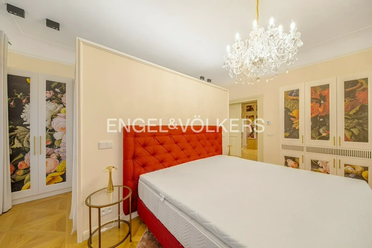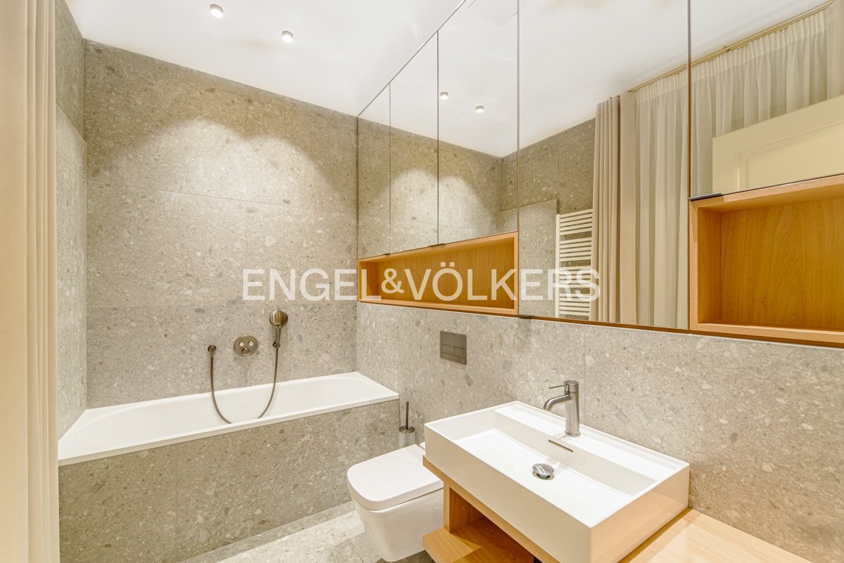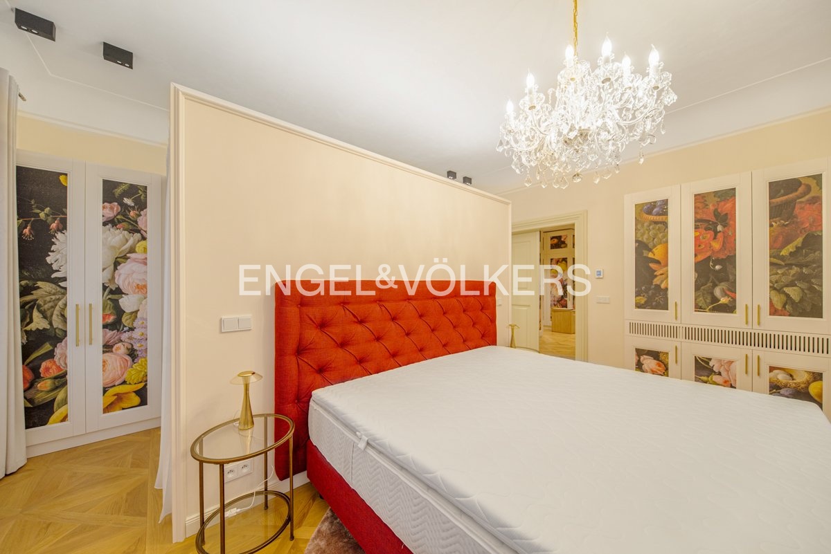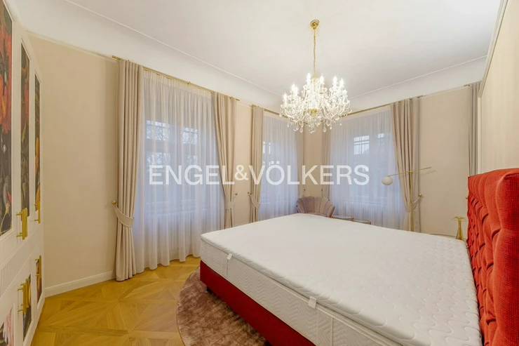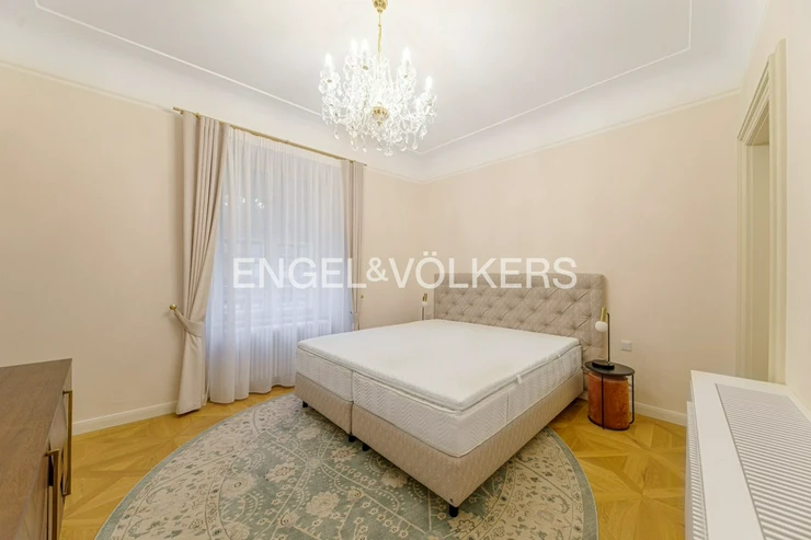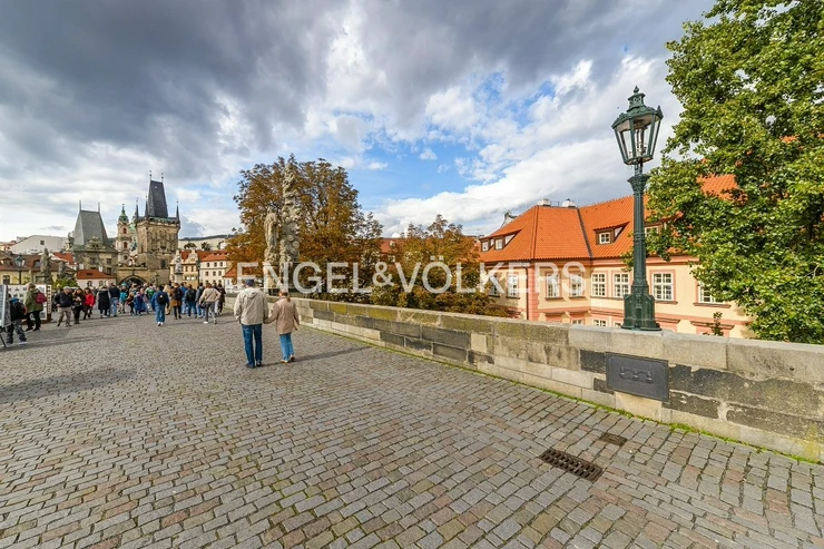The luxurious fully furnished and air-conditioned apartment is located on the second floor of this exclusive residence. Practical layout of the apartment, where the entrance hall leads to the bedrooms and kitchen connected to the dining area. The superior living room is separate. Kitchen fully equipped with MIELE appliances. From the living room and bedroom, there is a fantastic view of the Vltava River and Charles Bridge. There are wooden floors, air conditioning, and electrically operated blinds.