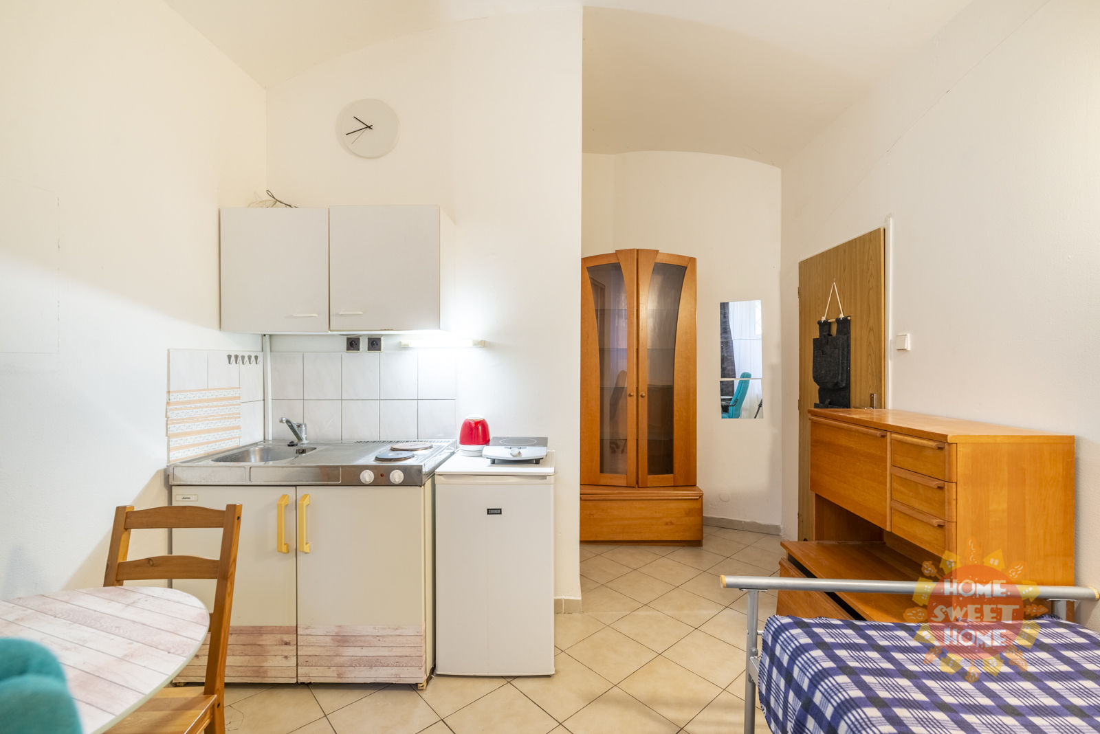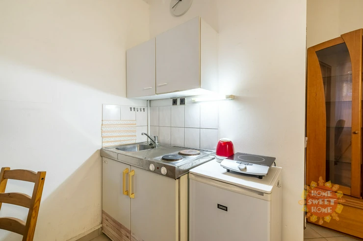 We offer for rent a 1+kk apartment with an area of 19m2, which is located in the basement of a house in Lužická Street, Vinohrady. The apartment is available furnished. It is one small room with a kitchenette (fridge with freezer, two-burner stove, microwave oven), bathroom with shower and toilet. The apartment is ideal for one person.