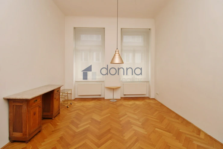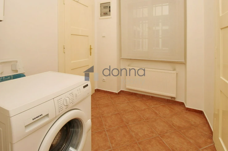 The house is renovated, without an elevator. The apartment is very quiet and consists of a hallway, kitchen, two large rooms with a view of a quiet courtyard, bathroom and utility room with washing machine. In the kitchen there is a dishwasher, gas hob, electric oven, extractor hood. Bathroom with corner bath and toilet. In the rooms there is only a wardrobe. Gas boiler for hot water and heating. There are parquet and tiled floors. The house is loated in the very center of Prague, 5 min walk from Wenceslas Square. Available from 1. 4. 2026.
