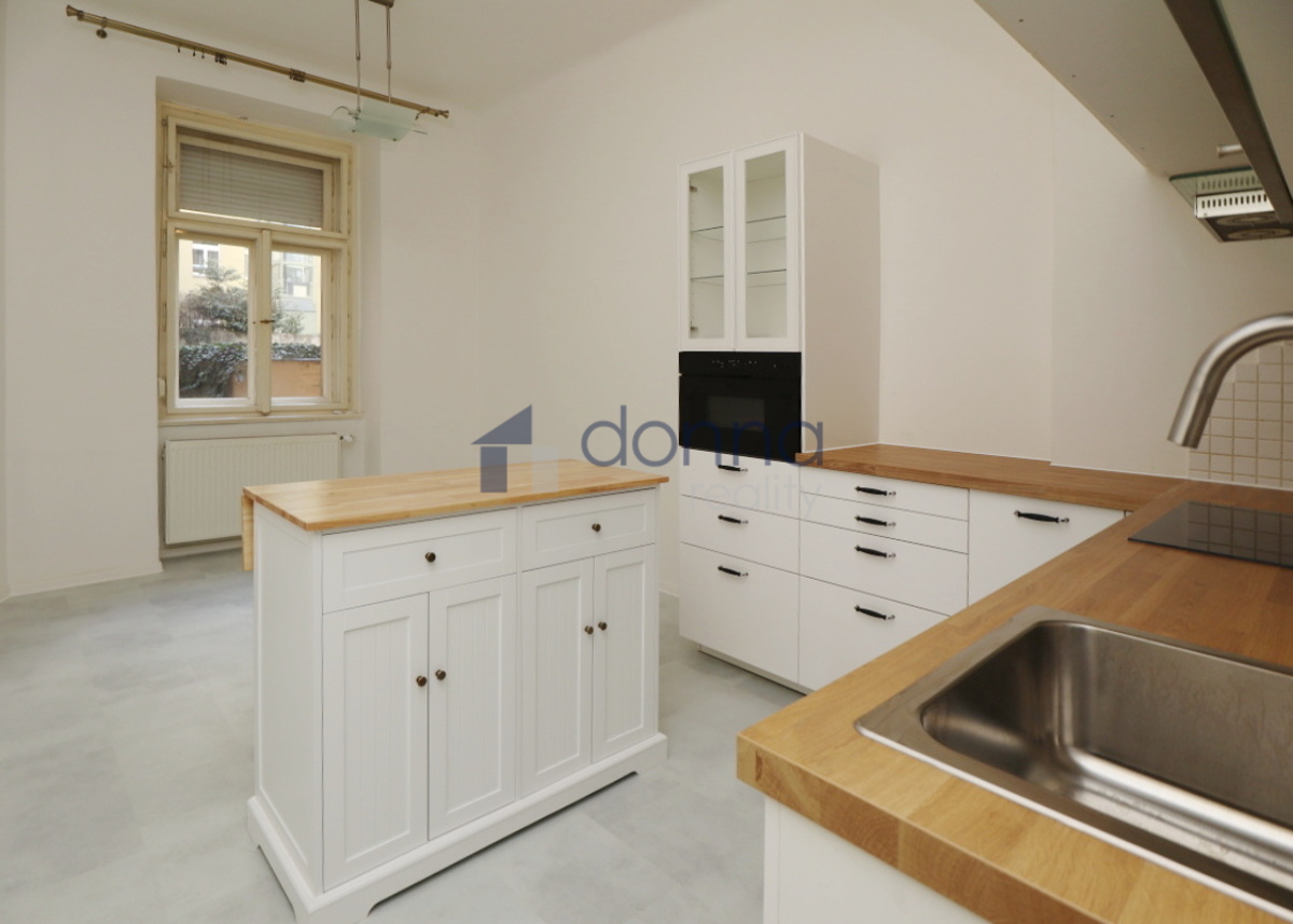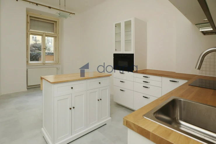 Apartment for rent a 3+kt apartment, 79sqm, on the 2nd floor of of the residential building in Bulharská street, Prague 10 - Vršovice. The apartment consists of a spacious hallway, dressing room, two bedrooms, a room with a kitchenette and a pantry, a bathroom with a bathtub and space for a washing machine, a separate toilet.