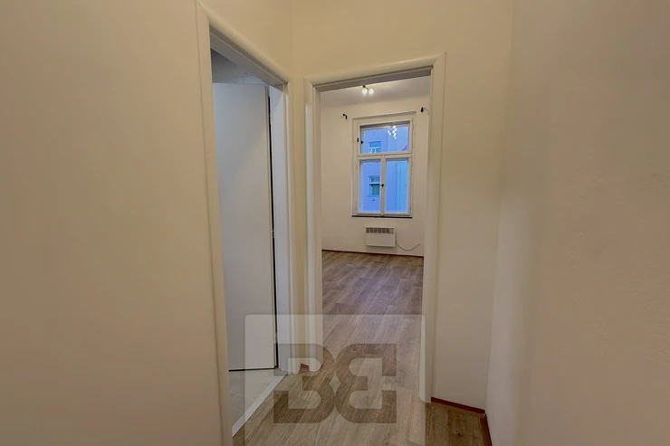 We offer for rent a beautiful, fully renovated 2+1 apartment of 38m², located in a brick building on Hartigova Street. Despite its compact size, the apartment provides ample storage space, two separate non-passing bedrooms, a kitchen unit in the hallway, a separate toilet, and bathroom. All windows face a quiet inner courtyard.