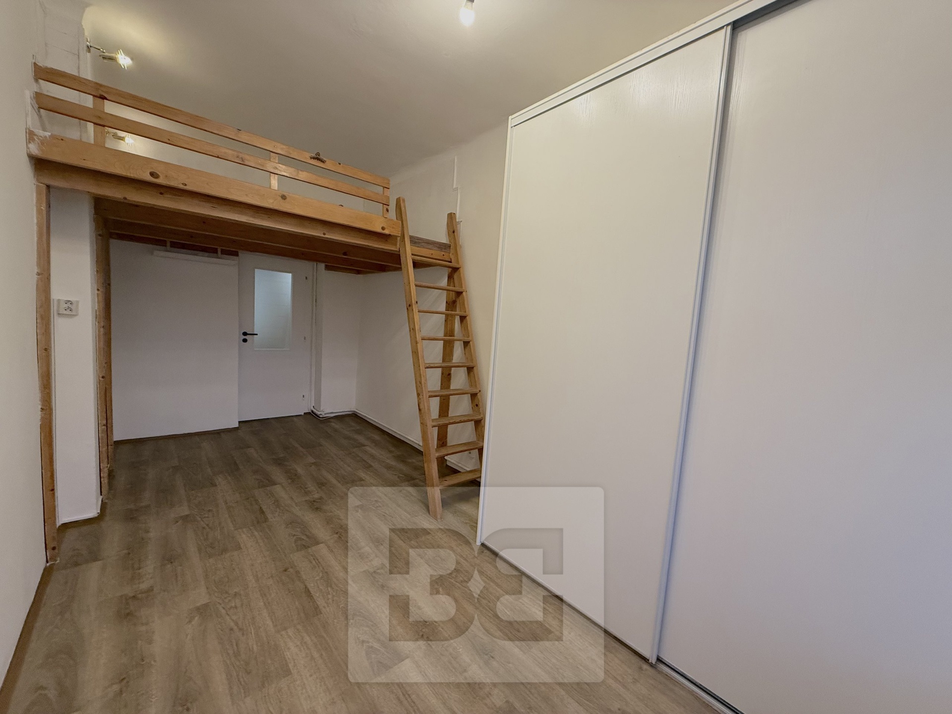 • Larger bedroom with loft bed, built-in wardrobe, and practical storage room