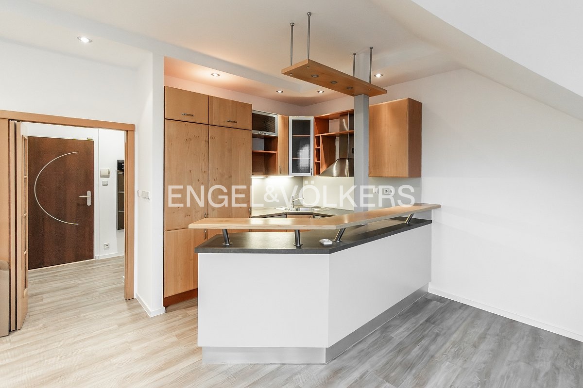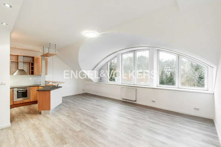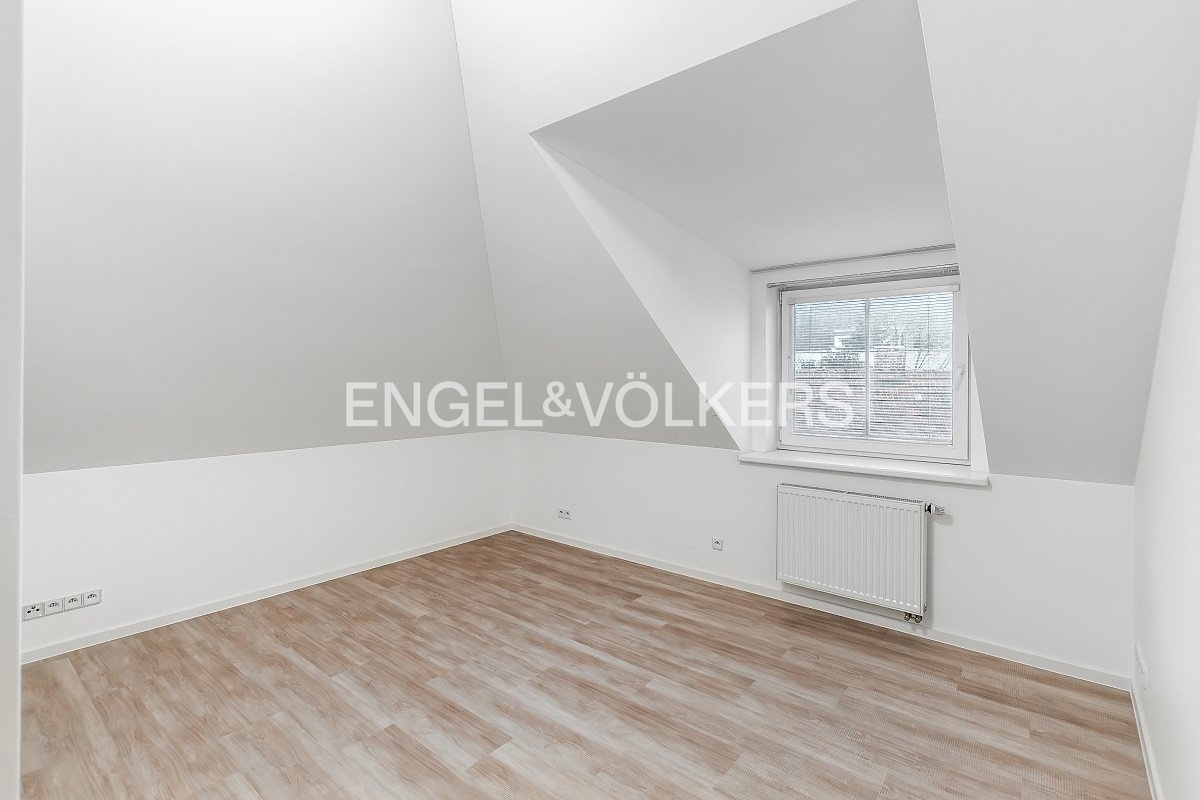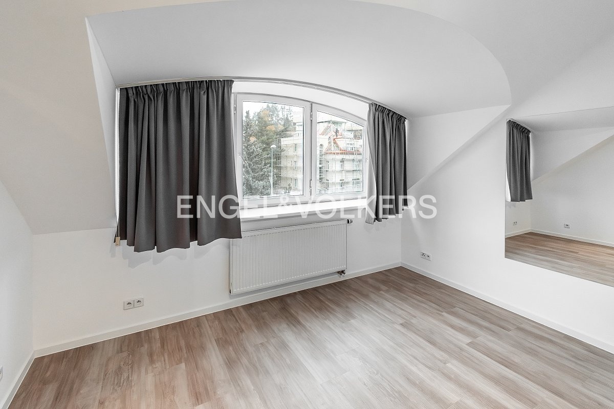 A bright, unfurnished 3+kt apartment with an area of 92.5 m² is available for rent. It is located on the 3rd floor of a family house with an elevator on V Holešovičkách Street.