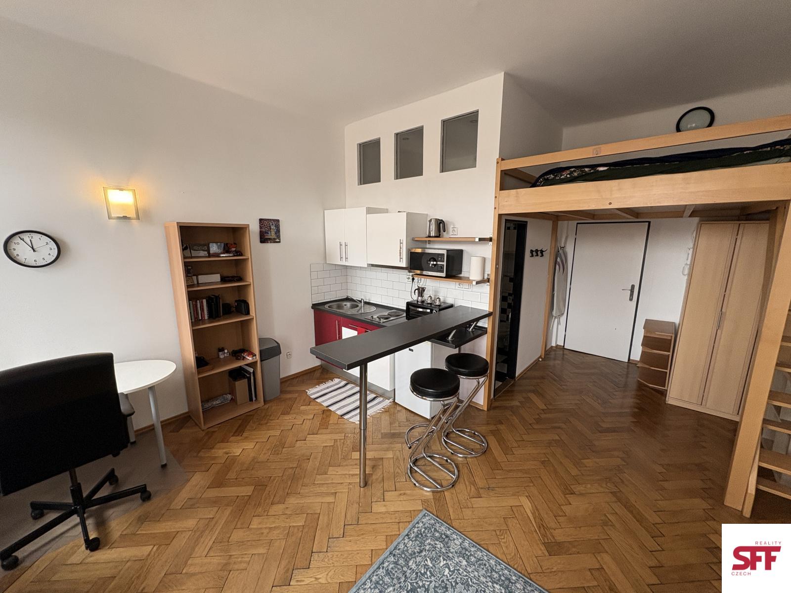 Available from April 2, 2026. We offer a long-term rental of fully furnished studio apartment of 27 m and sup2;, ideally located in the city center of Prague, on Na Bojišti street, Prague 2 New Town, with excellent transport connections. The studio is situated on the 3rd floor of a well-maintained building with an elevator.