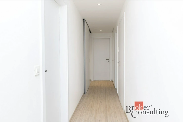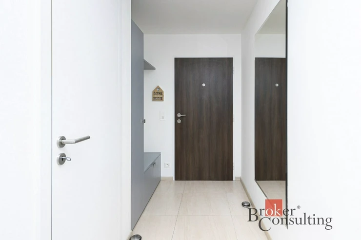 Byt disponuje dvěma neprůchozími pokoji – jeden z nich má vlastní vstup na terasu a druhý je vybaven vestavěnou skříní. V bytě nechybí prostorná předsíň, kde najdete botník, věšák a další vestavěnou skříň. Koupelna je moderní a vybavena vanou, sprchovým koutem a světlými obklady. Samostatné WC a technická místnost se nachází také v předsíni, kde je přípojka na elektřinu a odvod vody.