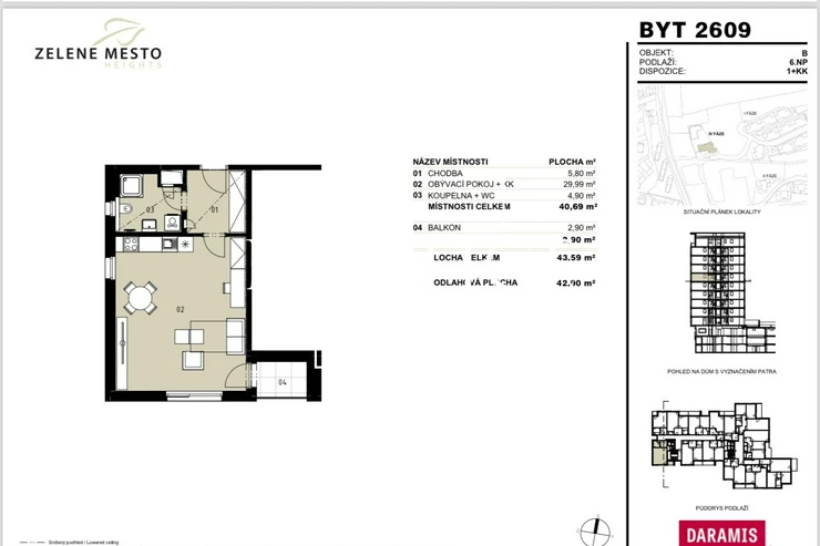 “PRESTIGE GROUP” is offering a 41 m² 1-bedroom apartment for rent, located in the sought-after Prague 9 – Hrdlořezy neighborhood, at V Třešňovce.