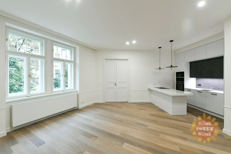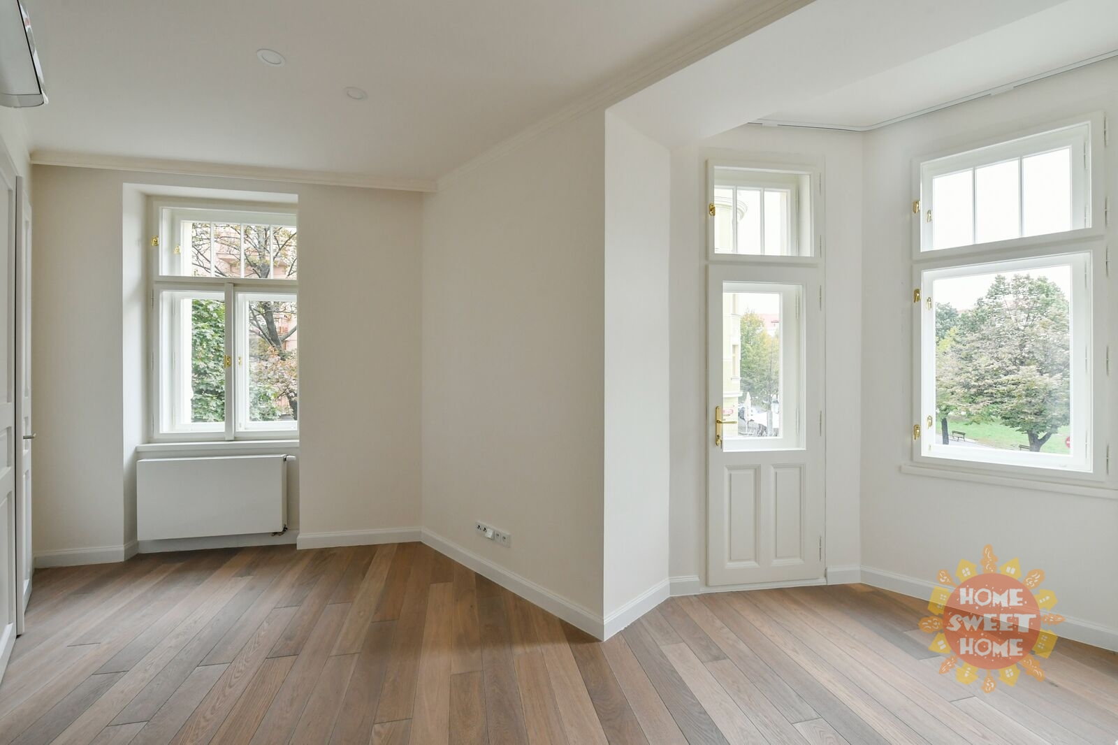 Luxury living in a modern apartment in the heart of a beautiful Art Nouveau house. Apartment for the most demanding. Exclusive location in Vinohrady, right on Jiřího z Poděbrad Square. Cultural and social center (farmers' markets). Complete civic amenities, many pleasant restaurants, cafes, bistros and wine bars in the area. Flora shopping center 10 minutes. Great transport accessibility, metro A and tram stop within walking distance. Plenty of greenery - a short walk from Riegrovy Sady park. The apartment is offered unfurnished, possibility of furnishing. Available from 1.6.2026