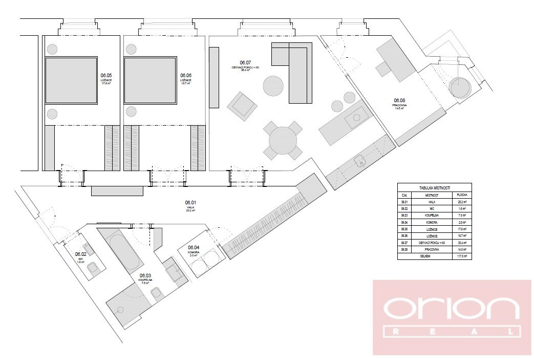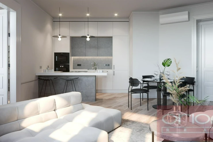 We offer for rent a luxurious air-conditioned three bedrooms apartment with a balcony on the 1st floor of a completely renovated art nouveau building with an elevator, in the sought-after location of Prague 3 - Vinohrady, just a few steps from the popular park Riegrovy sady. The unfurnished apartment with a total area of 118 sqm offers an entrance hall, a spacious living room connected to a fully equipped kitchen, 2 bedrooms, a study/guest bedroom, 2 bathrooms with a bath, shower, bidet and toilet, a pantry. The floors have oak parquets and tiles, the apartment is equipped with built-in wardrobes, a wine cellar, a washing machine, a dryer, a security entrance door, and a gas boiler. Attractive location of Vinohrady with all amenities and excellent transport links. There are many restaurants, bars, bistros, local shops, Flora shopping center in the vicinity. Farmers' markets are regularly held on Náměstí Jiřího z Poděbrady. The apartment is located just a few minutes from the tram stop and the Jiřího z Poděbrady metro station. The surroundings offer a lot of greenery, ideal conditions for sports and relaxation. One garage parking space must be rented with the apartment for extra 6500 CZK + 21% VAT. Possibility to furnish the apartment for a higher rent. The rent of 4,278 Euros is payable in Euros. Available from June 1, 2026.