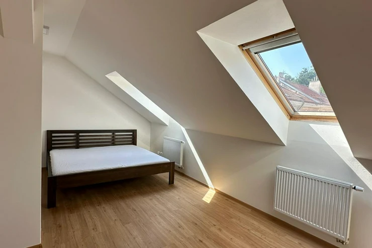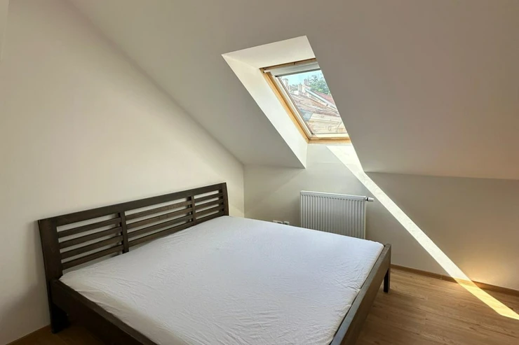 We are pleased to offer for rent a newly renovated 2-bedroom duplex apartment with a total floor area of 73 m², located on the 5th floor of a well-maintained residential building on Grafická Street, in the highly desirable Smíchov district of Prague 5.