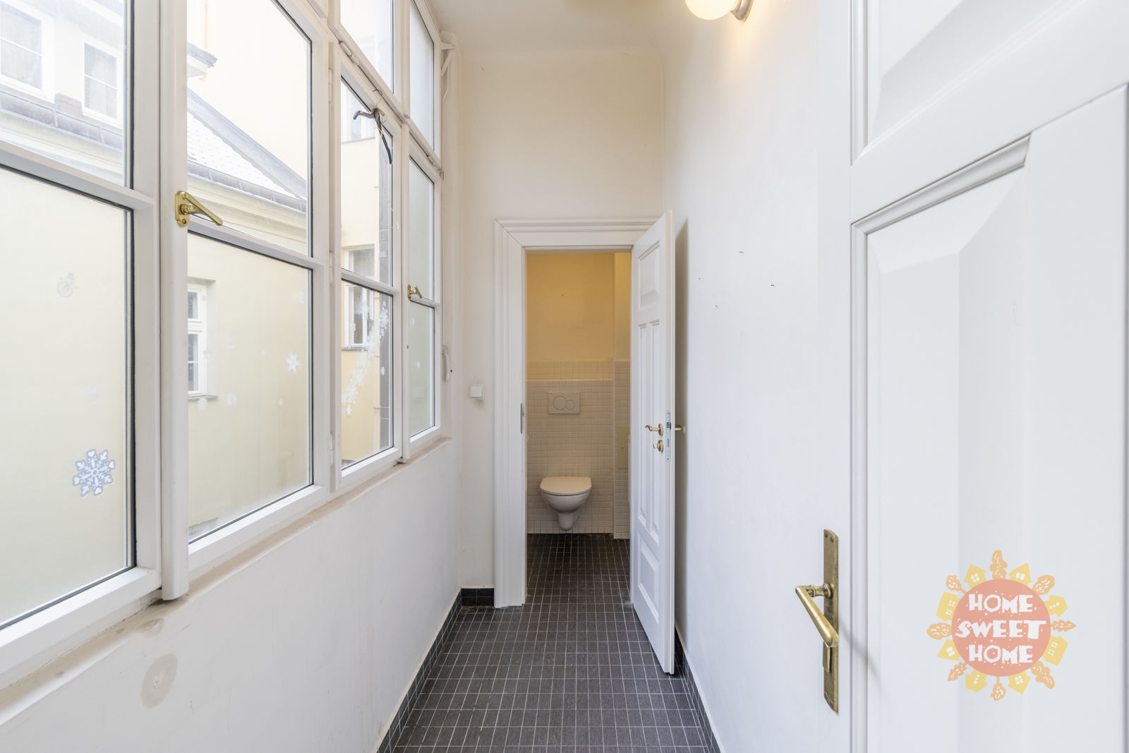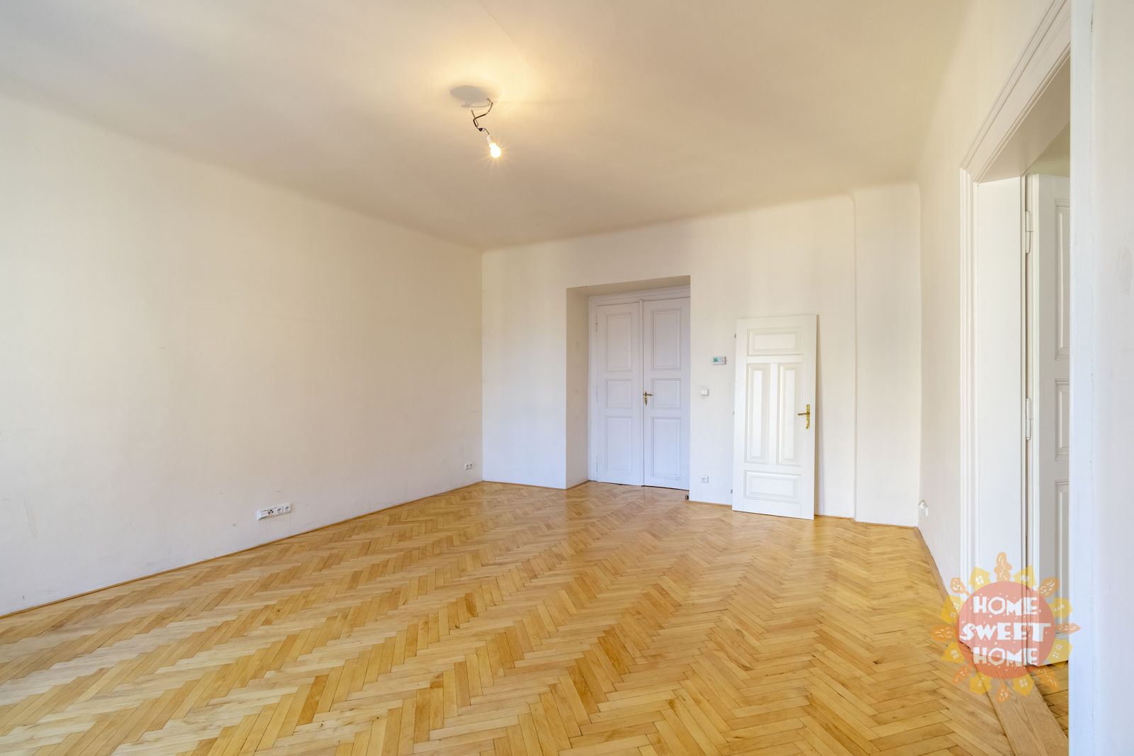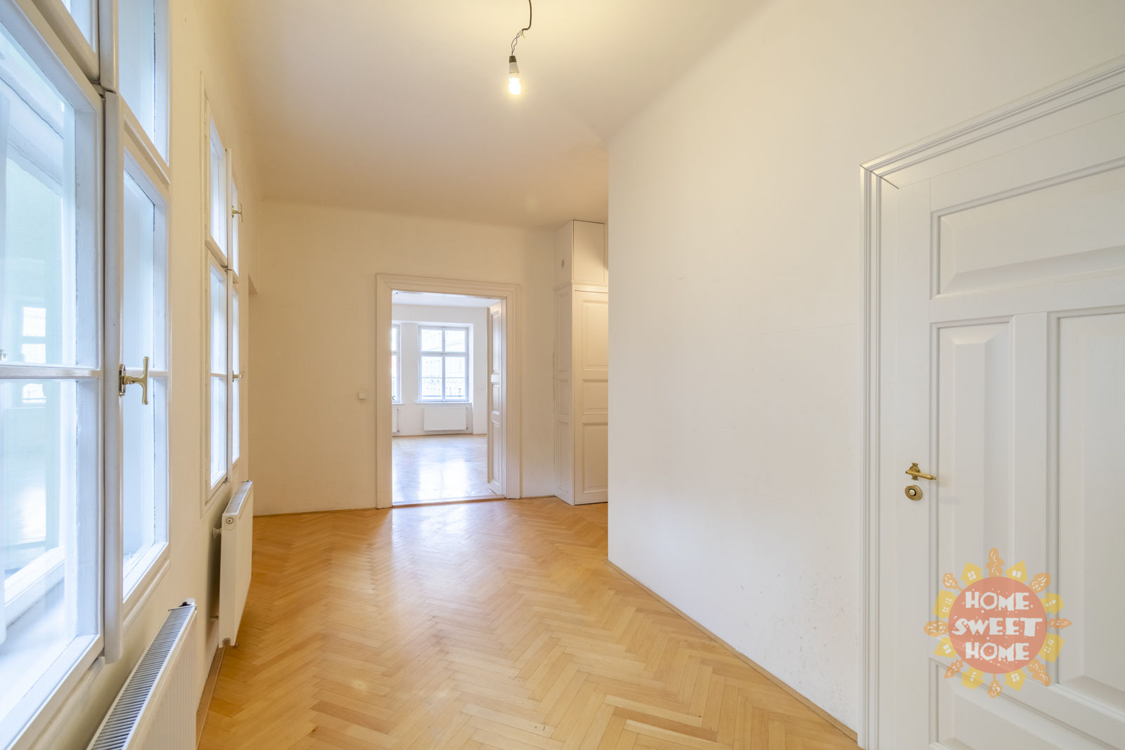 The layout of the apartment offers a living room with a pleasant view, a spacious kitchen equipped with an oven and stove, a dishwasher, a microwave oven, three bedrooms, two bathrooms, two toilets, a pantry and an entrance hall. Heating and water heating is provided by its own gas boiler. The apartment has interesting baroque vaults. Wooden parquet and tiles on the floors.
