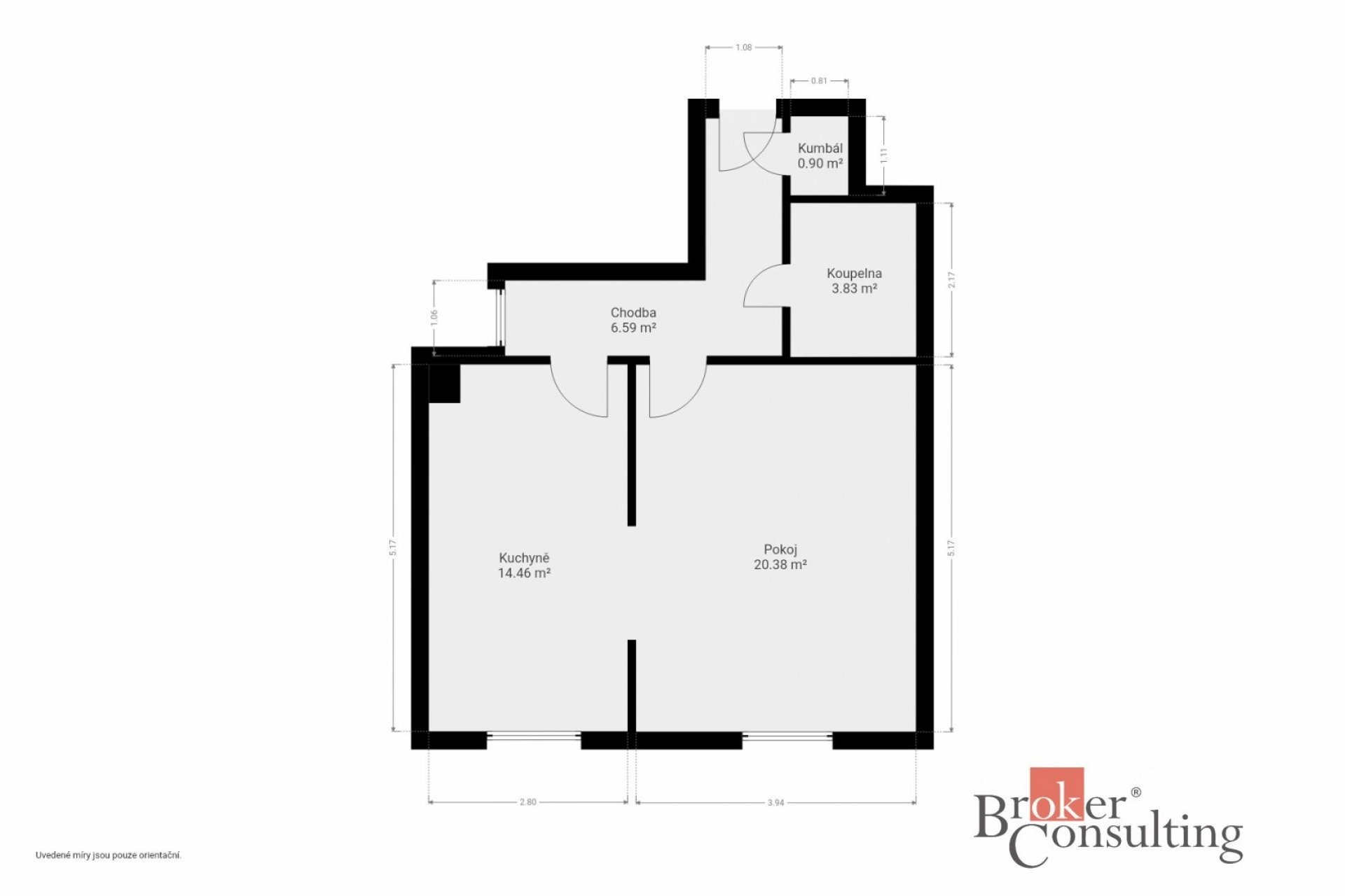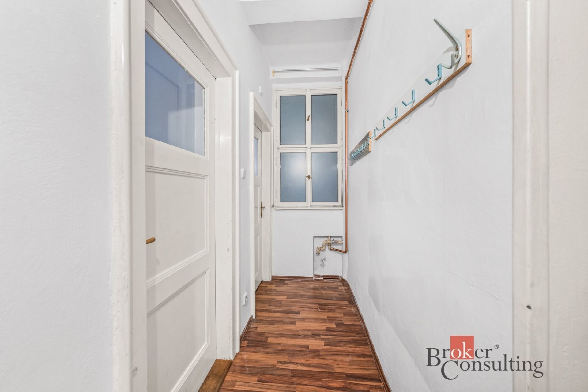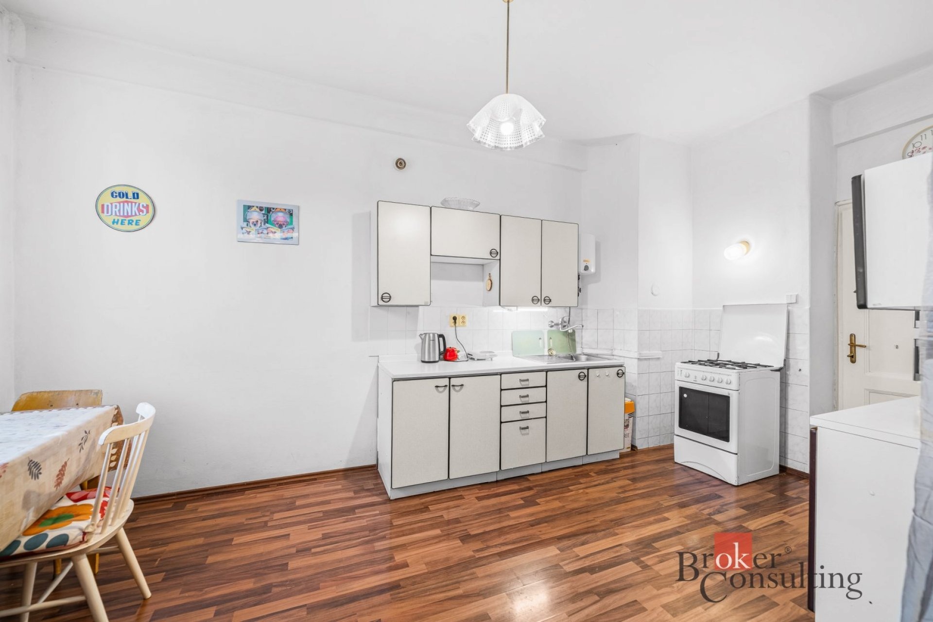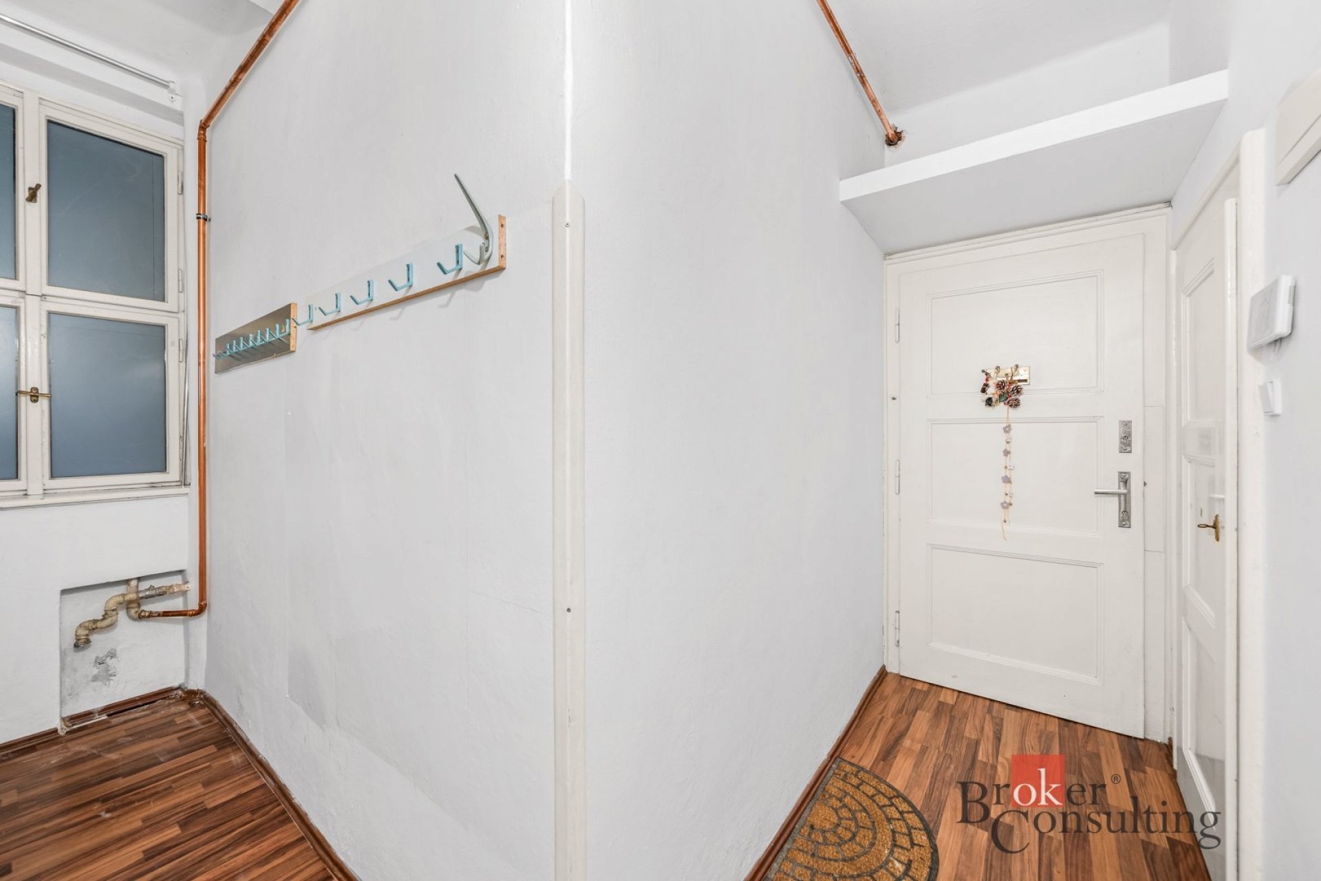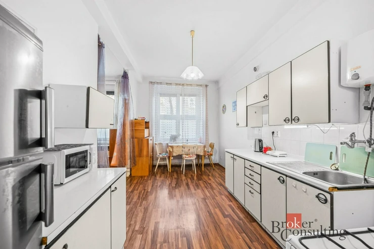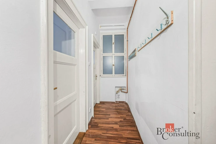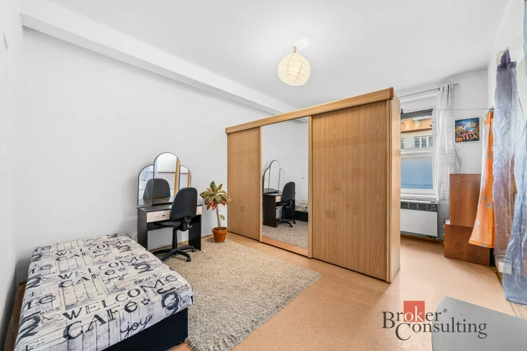 Byt je má rozlohu 46 m2, je v přízemí cihlového bytového domu. V bytě zůstává většinu vybavení. Byt je tedy řešen velkou obytnou místností, kdy aktuální nájemnice místnost rozdělila šatní skříní. Obývací část je propojena s kuchyní s jídelnou. Z chodby bytu se dostaneme do koupelny s toaletou.