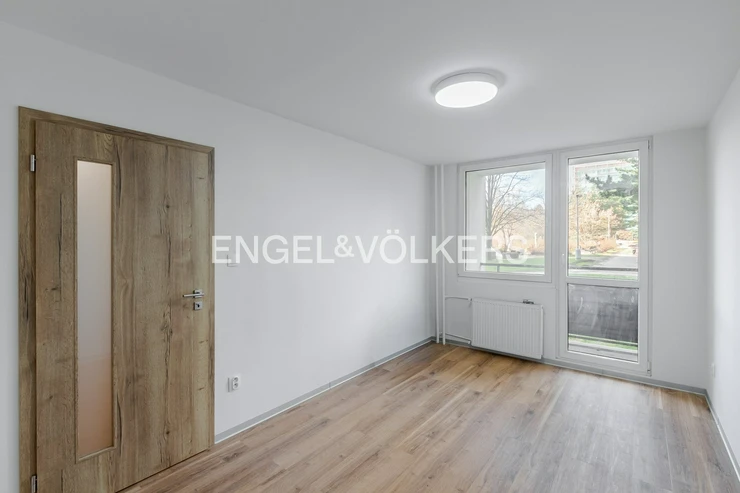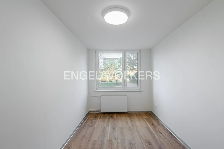 We offer for long-term rent an unfurnished 3+kt apartment located on the ground floor of a completely renovated panel building in one of the popular and practical parts of Prague – Stodůlky, Kocianova Street.