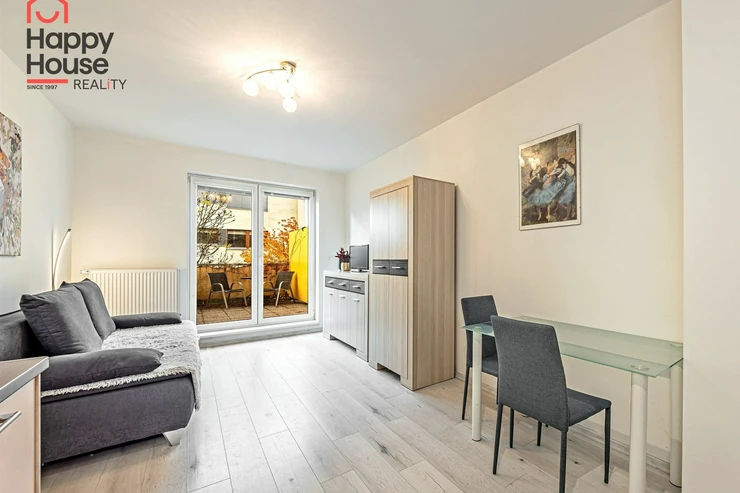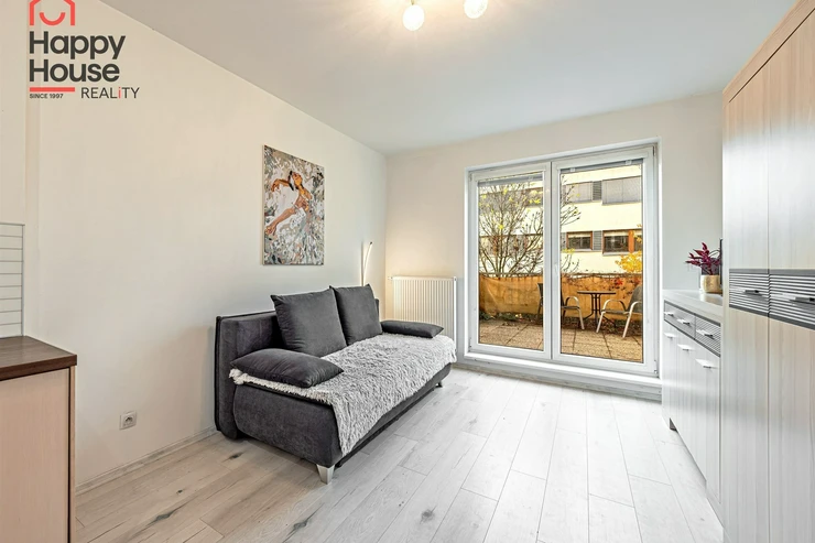 Are you looking for peaceful living with a private outdoor space and nature just around the corner? This designer-furnished studio apartment (31.5 sqm) offers just that – plus a large elevated terrace facing a quiet inner block towards the Botič stream.