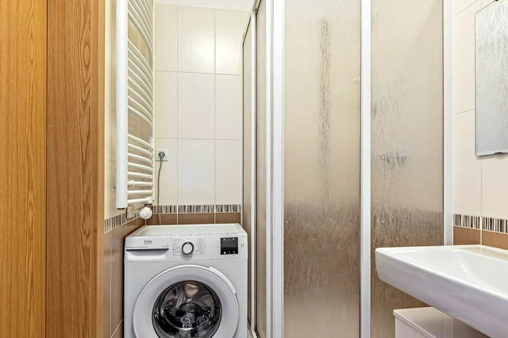 Directly behind the house, you will find a tranquil natural area around Práčský Pond and the meanders of Botič – ideal for walks, running, or dog walking.