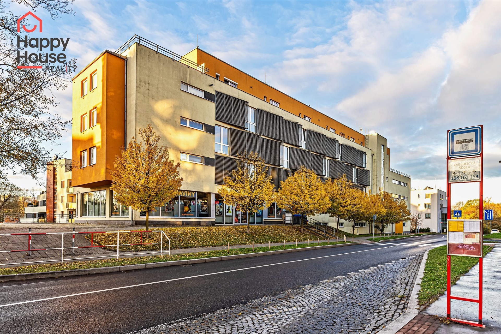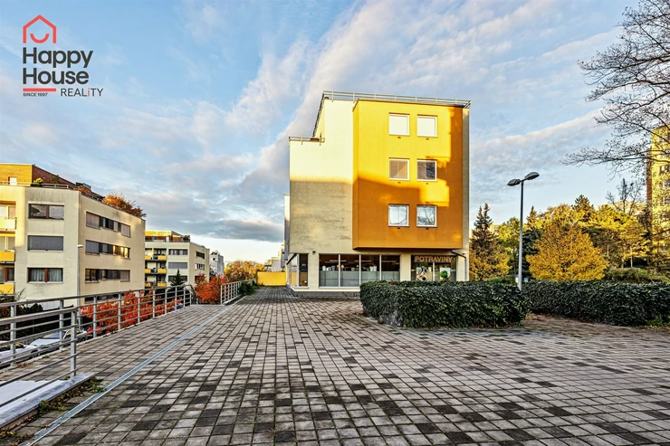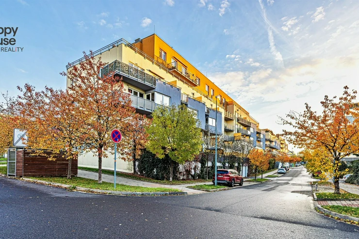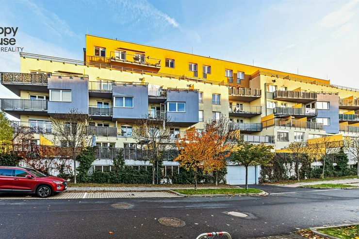 The apartment is located on the ground floor of a well-maintained modern building in the residential area of Záběhlice.