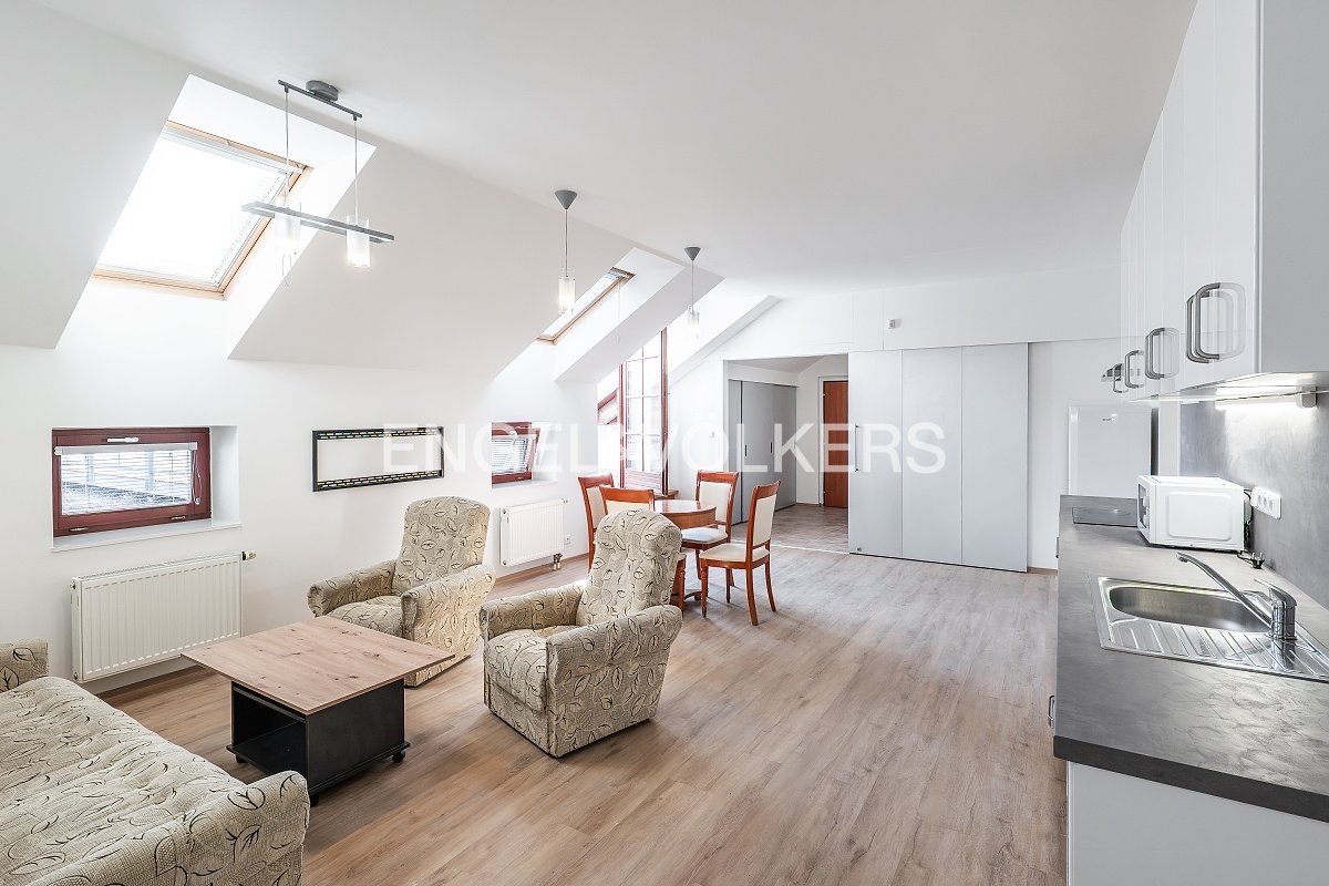 The apartment comes with two garage parking spaces for an additional fee of 2,500 CZK/month. Fees: 8,500 CZK (including utilities).