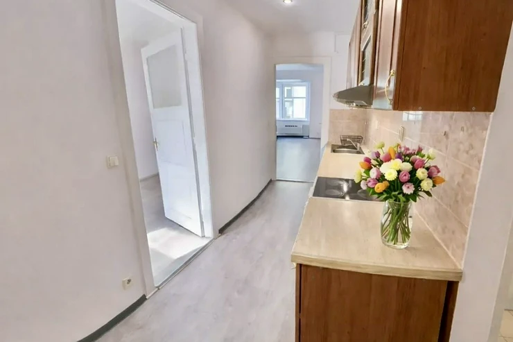We are offering a bright 2-room apartment with a usable area of 56 m² for long-term rent. It is located on the 3rd floor of a well-maintained brick building with an elevator in the attractive and rapidly developing neighborhood of Prague 4 – Michle.
