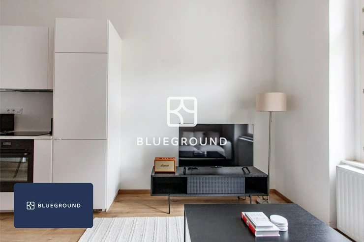Blueground offers this modern 2+kk apartment on Rostovská Street in Vršovice with the option to rent from one month to a year. The apartment is fully furnished, professionally managed and ready to move in immediately, which is ideal if your plans may change.