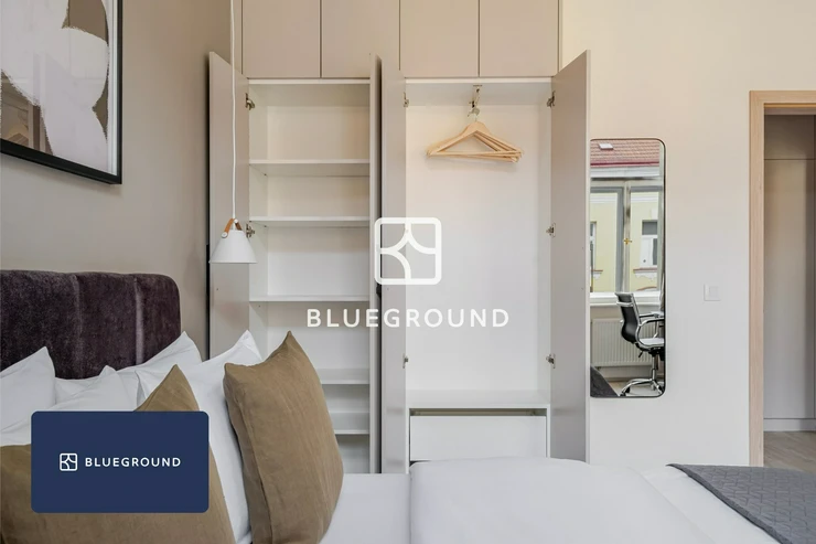 Blueground offers a fully furnished and equipped 2kk apartment in the quiet Nusle district of Prague 4, available for stays of one month or longer. The apartment is located in a peaceful residential area with quick access to the city center. With nearby parks, cafés, and local spots to explore, this apartment is an excellent choice for professionals or couples seeking a quiet, comfortable, and well-connected place to call home.