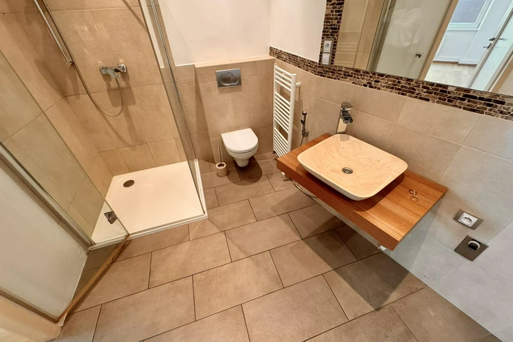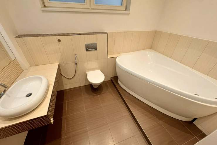 A major advantage is the large bathroom with a bathtub, ideal for relaxation.