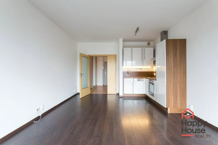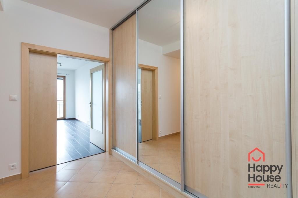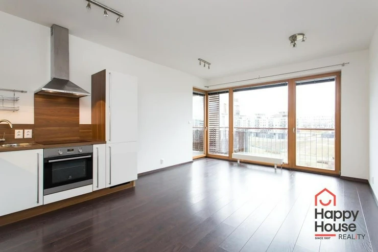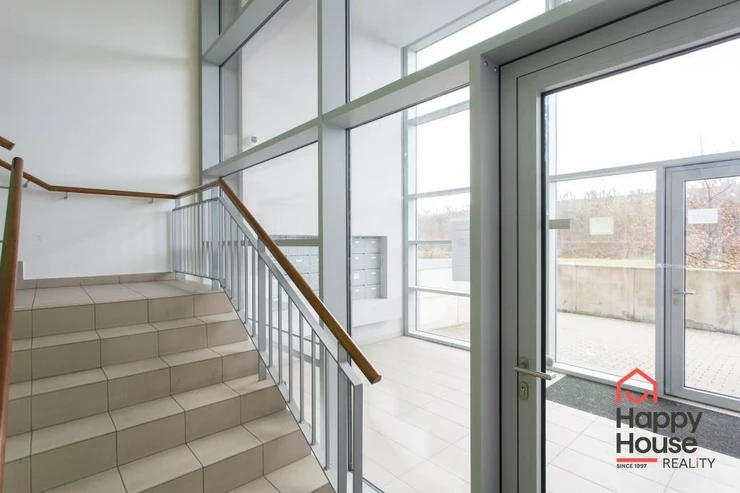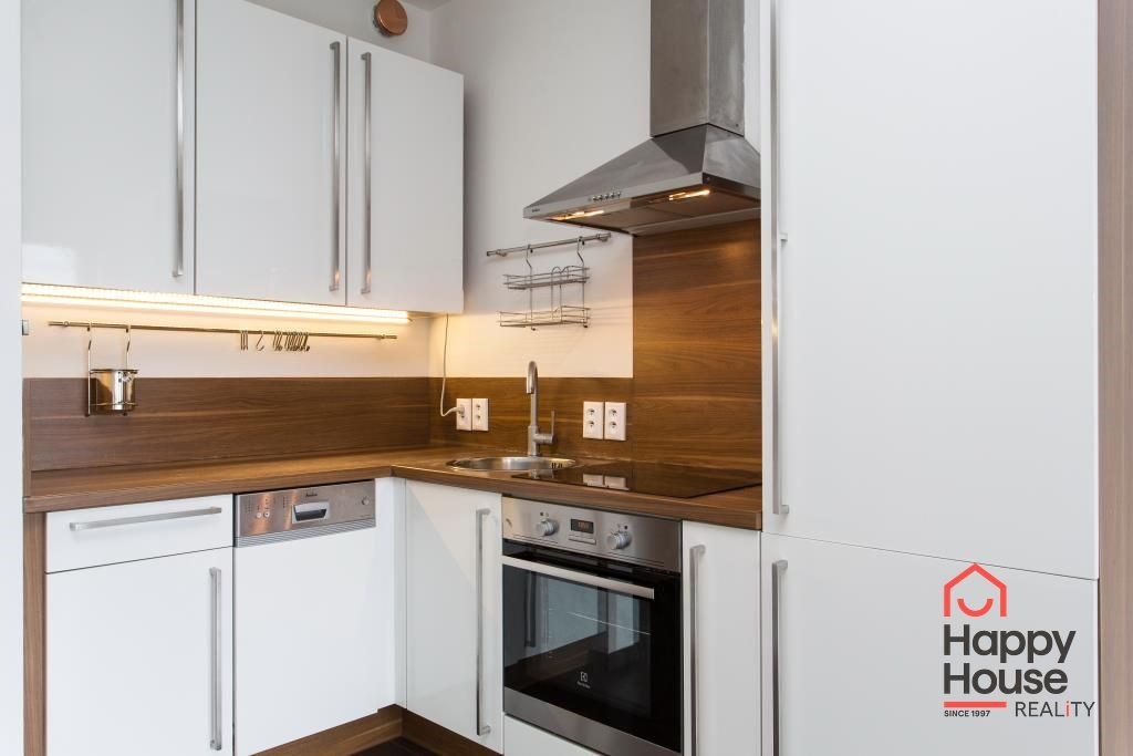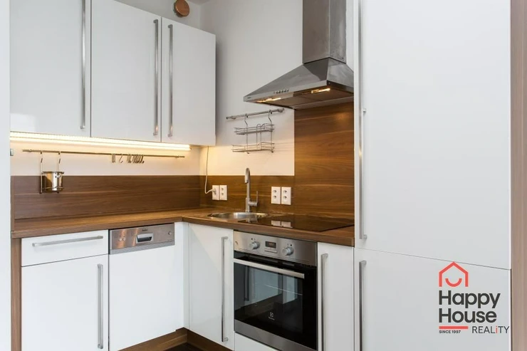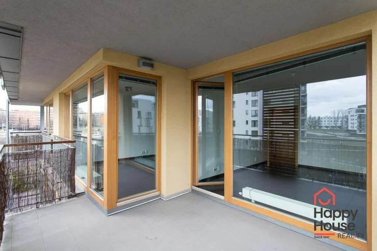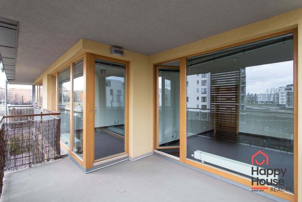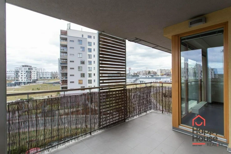 We exclusively offer for rent a luxury apartment on the 3rd floor in Nad Smetankou street with one bedroom and a layout of 65 sqm of living space with a 9 sqm terrace, a 6 sqm cellar and a parking space in an attractive location of Prague 9 in Hrdlořezy na Jarov. The apartment is very sunny and well-designed - access to the covered terrace is from the living room and from the bedroom. The kitchenette has a line with built-in appliances - refrigerator with freezer, ceramic hob, electric oven, dishwasher and extractor hood. Bathroom with bathtub, 2 sinks and connection for a washing machine. The toilet is located separately. Laminate floors in the rooms, tiles in the hallway and bathroom. Built-in wardrobe in the entrance hall. UPC internet available. Remote central heating. Living is made more pleasant by glass walls and beautiful surroundings full of greenery. Garage parking in the basement of the house for a fee.