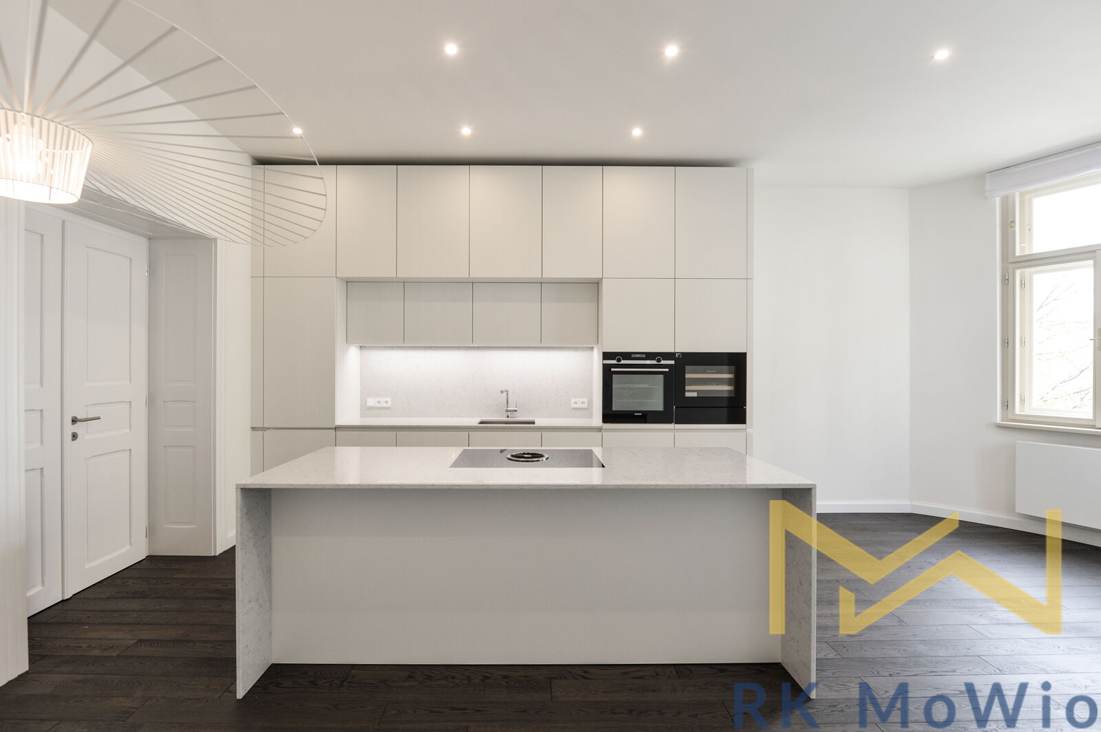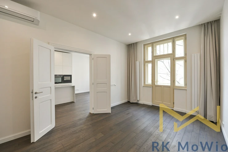 We offer for rent a high-standard, air-conditioned furnished apartment No. 1 with a 3-bedroom layout and a total area of 137 sqm, situated on the 1st floor (2nd above-ground level) of a renovated Art Nouveau building with an elevator on Laubova Street, Prague 3 – Vinohrady.