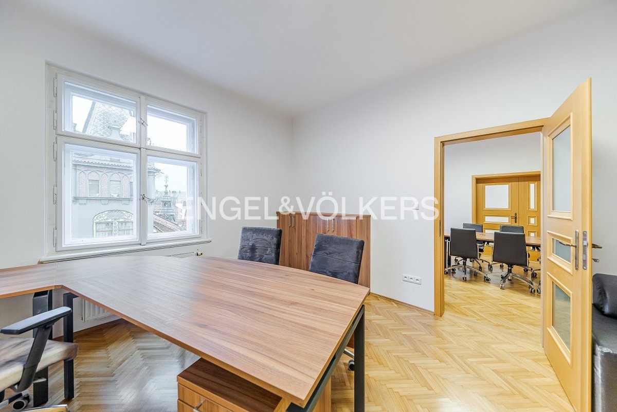 We offer for rent a space in the sought-after prestigious location of Pařížská Street, which is suitable not only for office purposes, but also as a representative housing. This elegant space is located on the 5th floor of a renovated apartment building, which is equipped with a modern elevator.