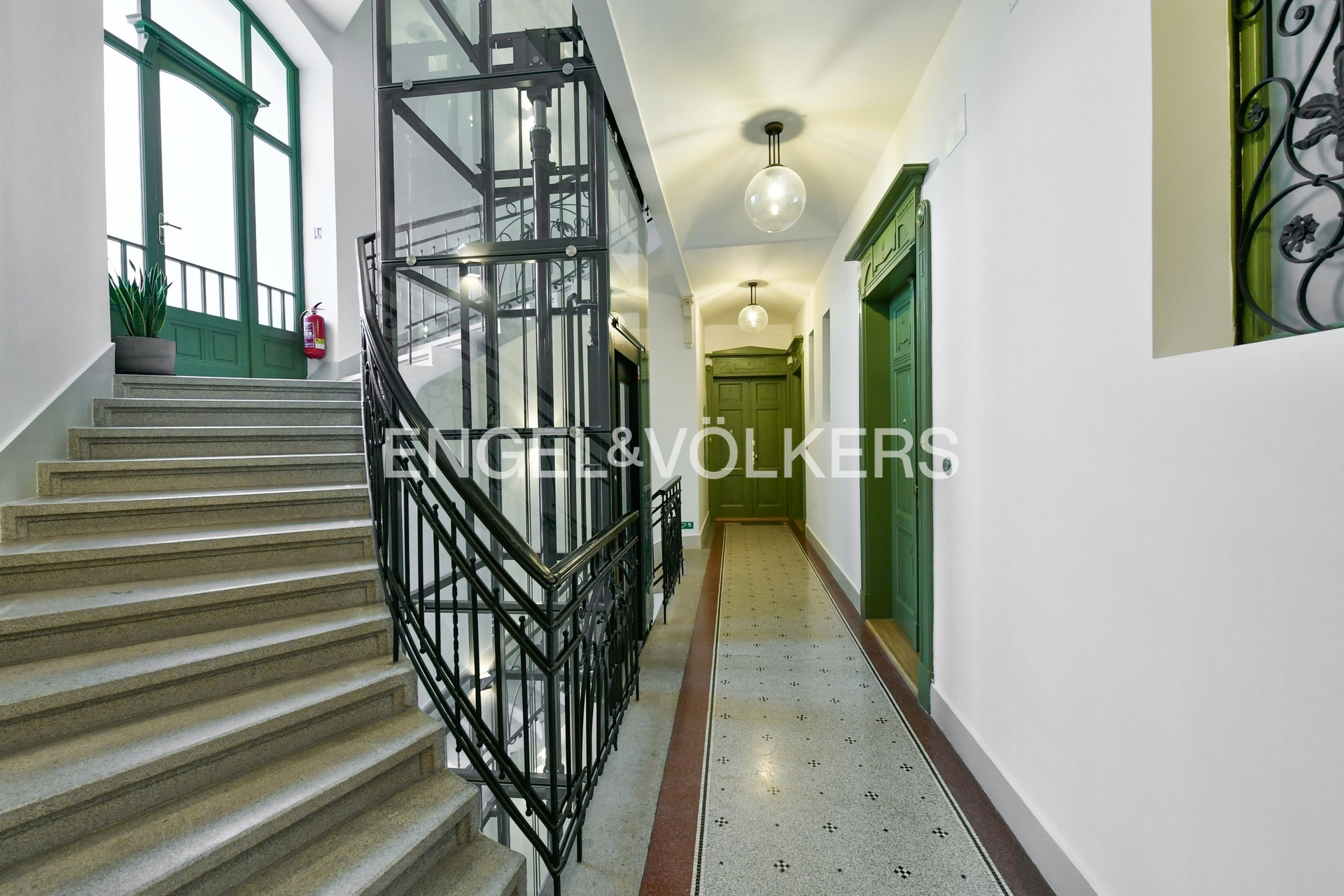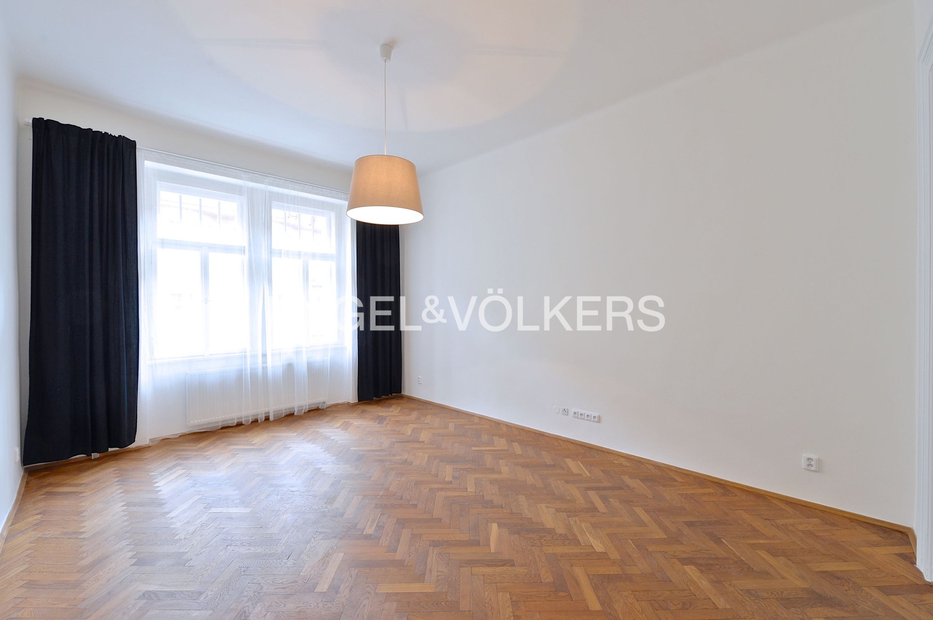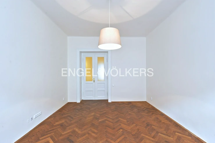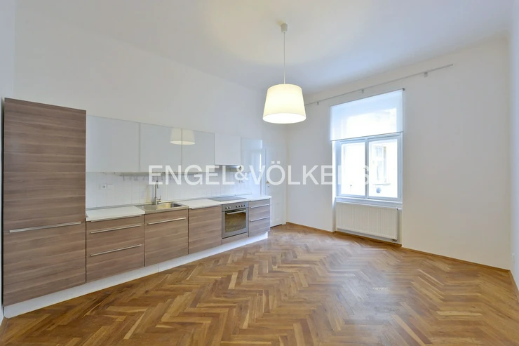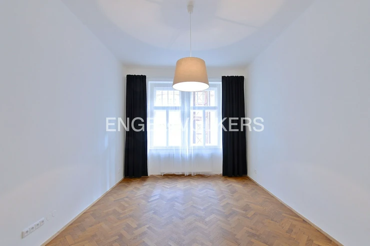Historical apartment building after a complete reconstruction, located in a popular area of Prague, right at the Square of Jiří z Poděbrad. Representative common spaces of the house. Reconstruction took care of preserving all the historical features of the building. Only high-quality materials, sanitary equipment and appliances were used during the reconstruction, parquet on the floors. The heart of the apartment is a bright and spacious living room with a kitchenette overlooking the square. Two bedrooms. Bathroom with a shower, the toilet is separate. A washing machine and a dryer are available in the apartment.