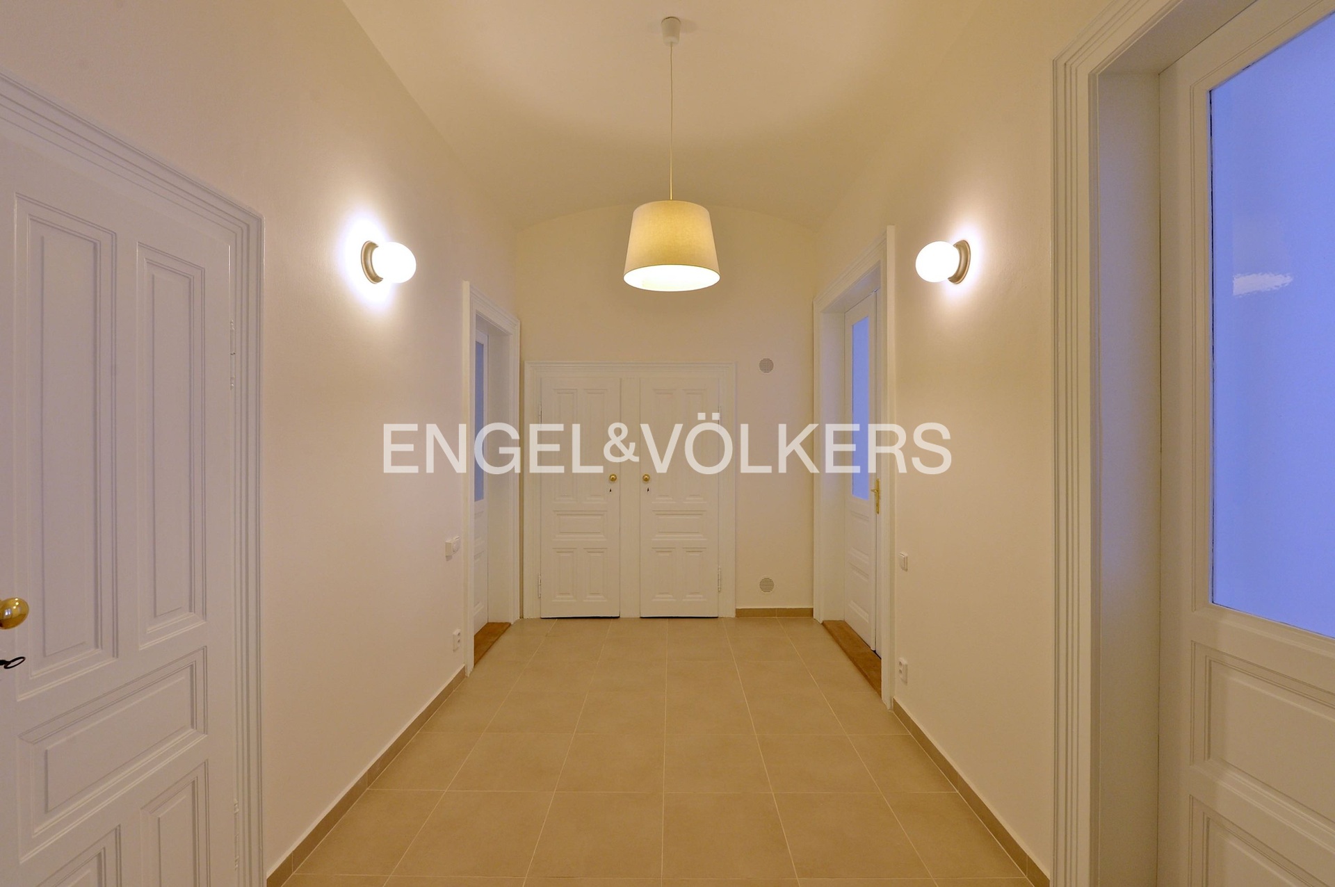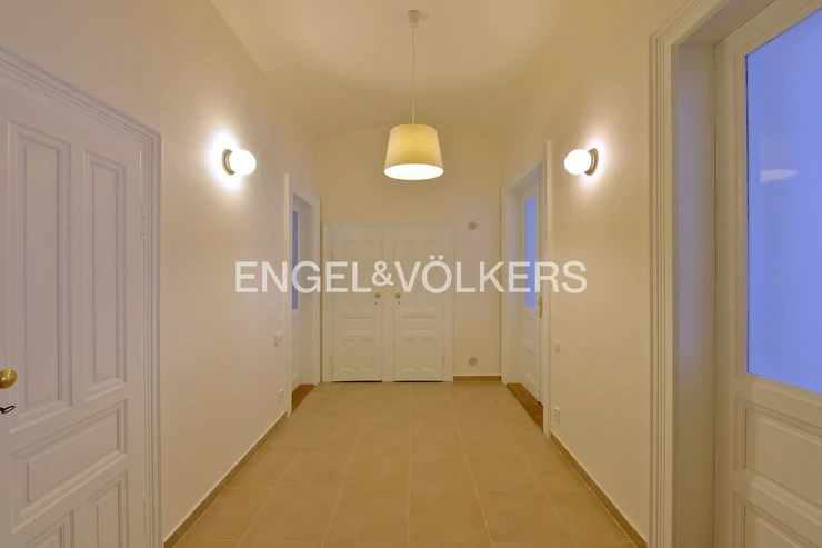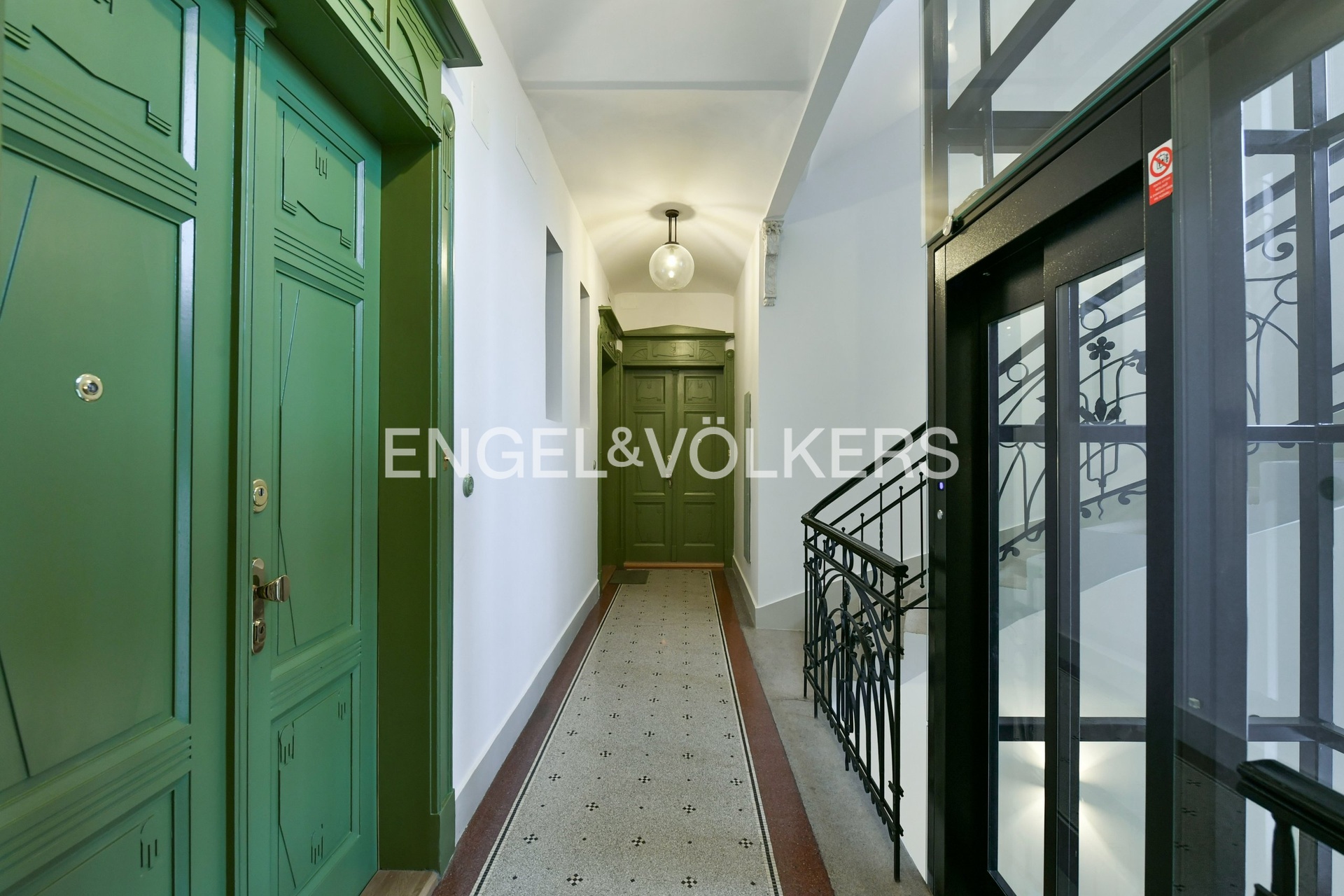 Historical apartment building after a complete reconstruction, located in a popular area of Prague, right at the Square of Jiří z Poděbrad. Representative common spaces of the house. Reconstruction took care of preserving all the historical features of the building. Only high-quality materials, sanitary equipment and appliances were used during the reconstruction, parquet on the floors. The heart of the apartment is a bright and spacious living room with a kitchenette overlooking the square. Two bedrooms. Bathroom with a shower, the toilet is separate. A washing machine and a dryer are available in the apartment.