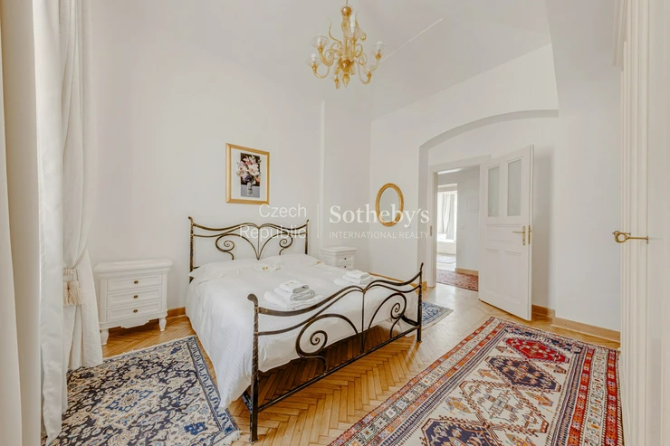 The apartment is fully air-conditioned and equipped with original Italian furniture, hand-woven carpets and luxury appliances. The 3+kk layout offers a comfortable living space with a living room and kitchenette and two separate bedrooms. The apartment is ready to move in immediately.