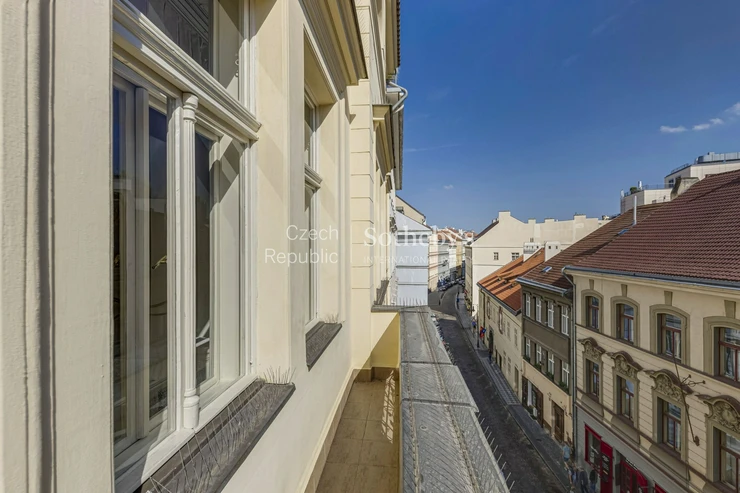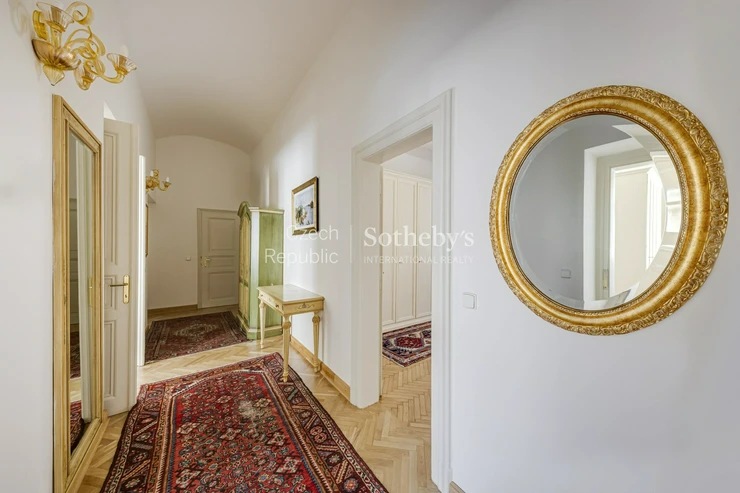 The house is located in the historical center of Prague, just 50 meters from the Powder Gate and just a few minutes walk from the Old Town Square. Although the residence is located right in the city center, there is peace and quiet inside the building, so residents are not disturbed by tourist traffic. The apartment thus meets all expectations of comfortable, pleasant and harmonious living in one of the most prestigious locations in Prague.