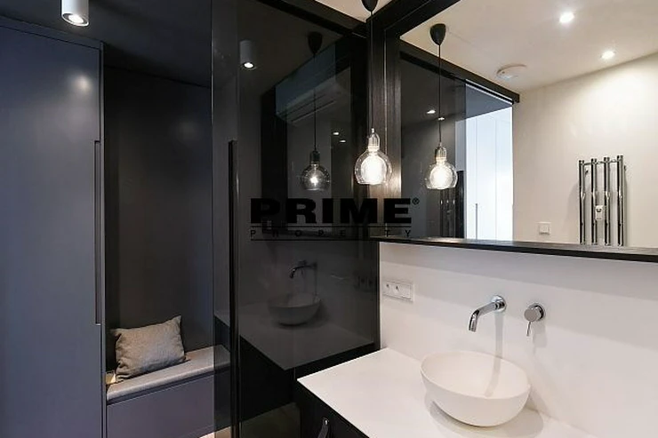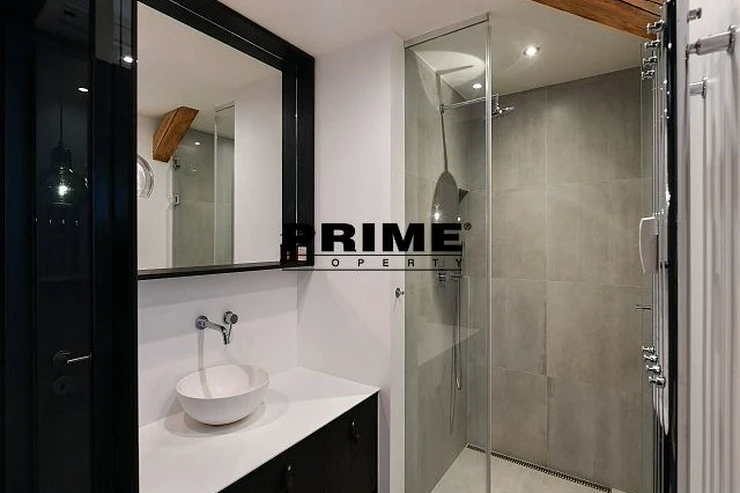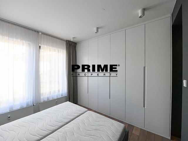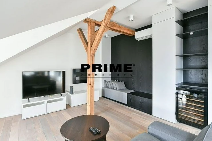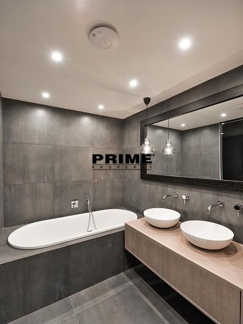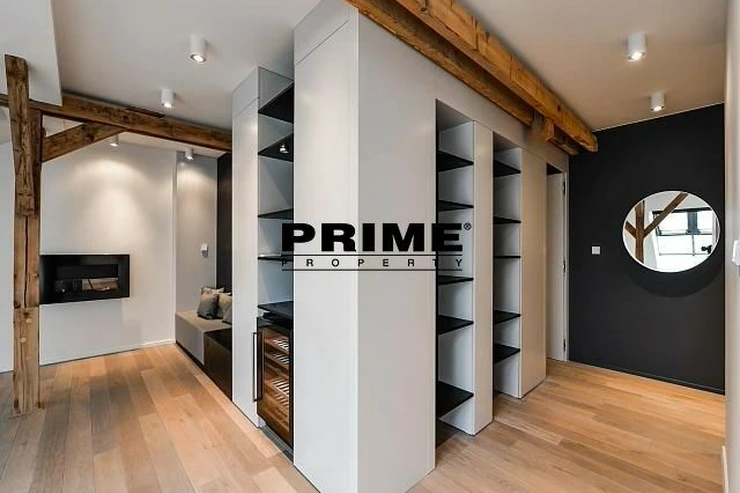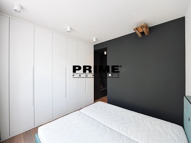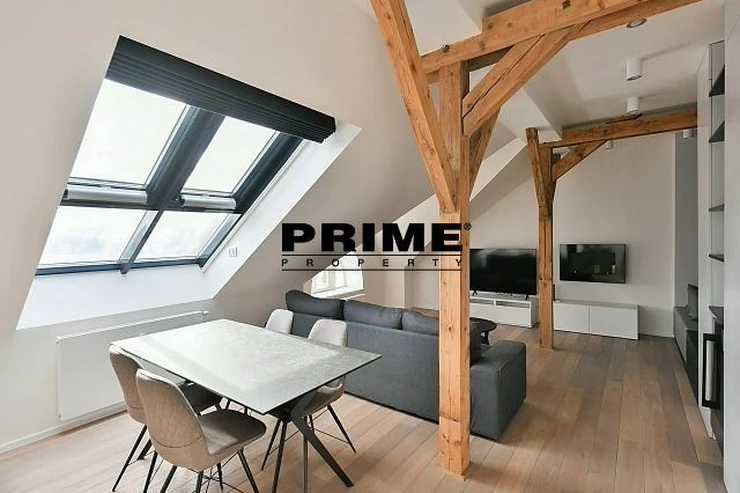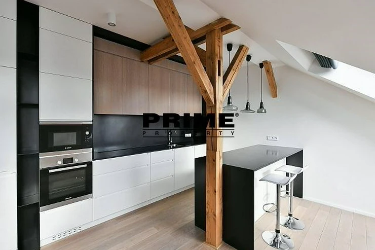 Newly renovated, exclusive, 2 bedroom, 2 bathroom, air conditioned, furnished attic apartment for rent, 3+kk, 156m2, with a garage parking space, situated on the 5th floor of a completely renovated Art Nouveau building with a lift.