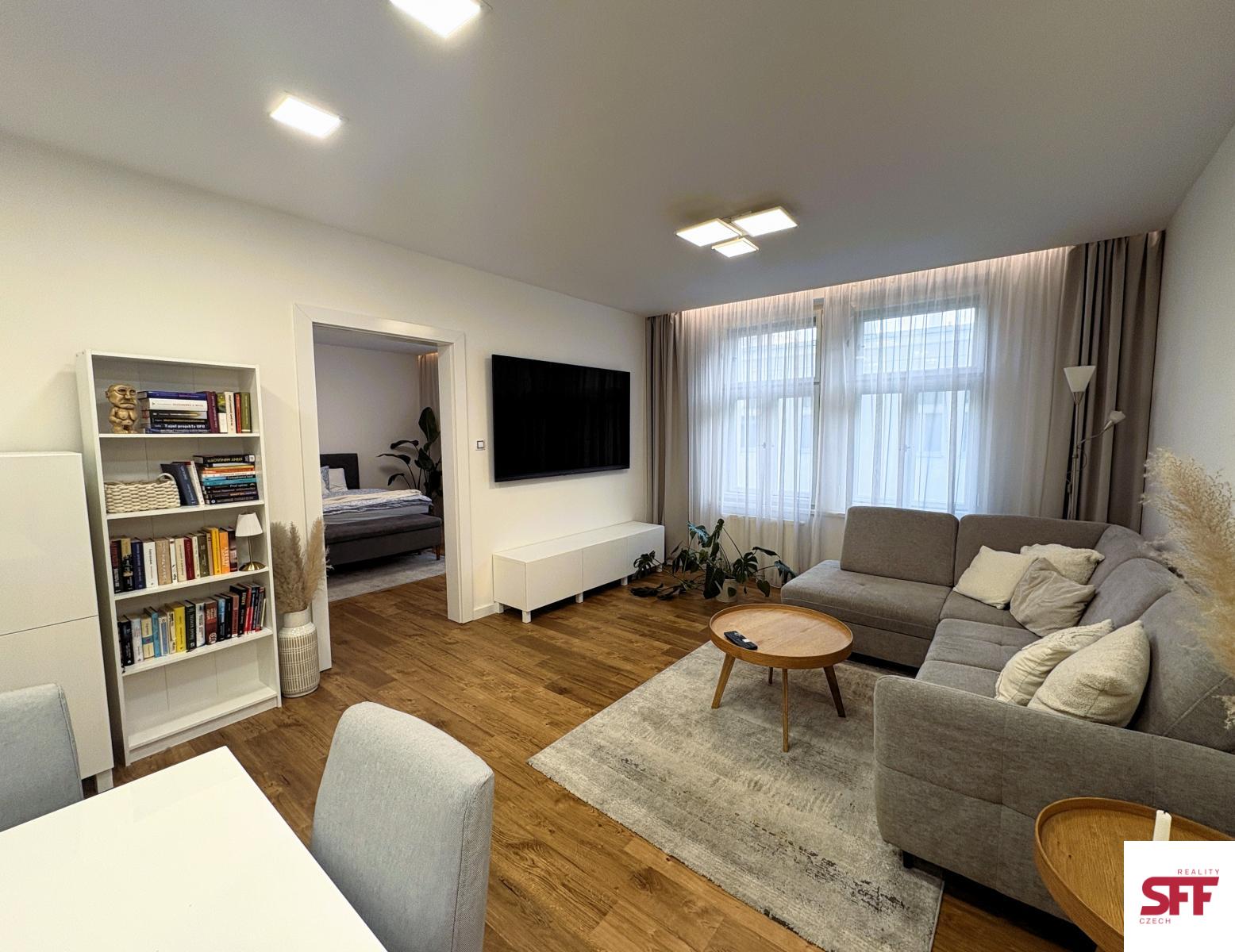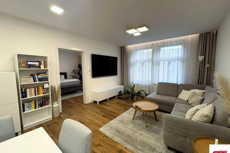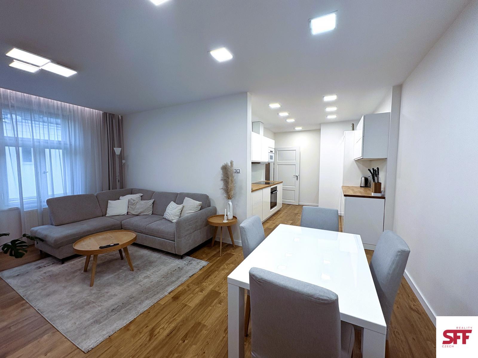 We offer for long-term rent a unique living opportunity in the very heart of Prague a beautiful, high-quality furnished and fully equipped 1-bedroom apartment (2+kk) located on Krakovská Street, Prague 1. The apartment is situated on the 4th floor of a renovated building with an elevator and provides comfortable and stylish living in a prime location.