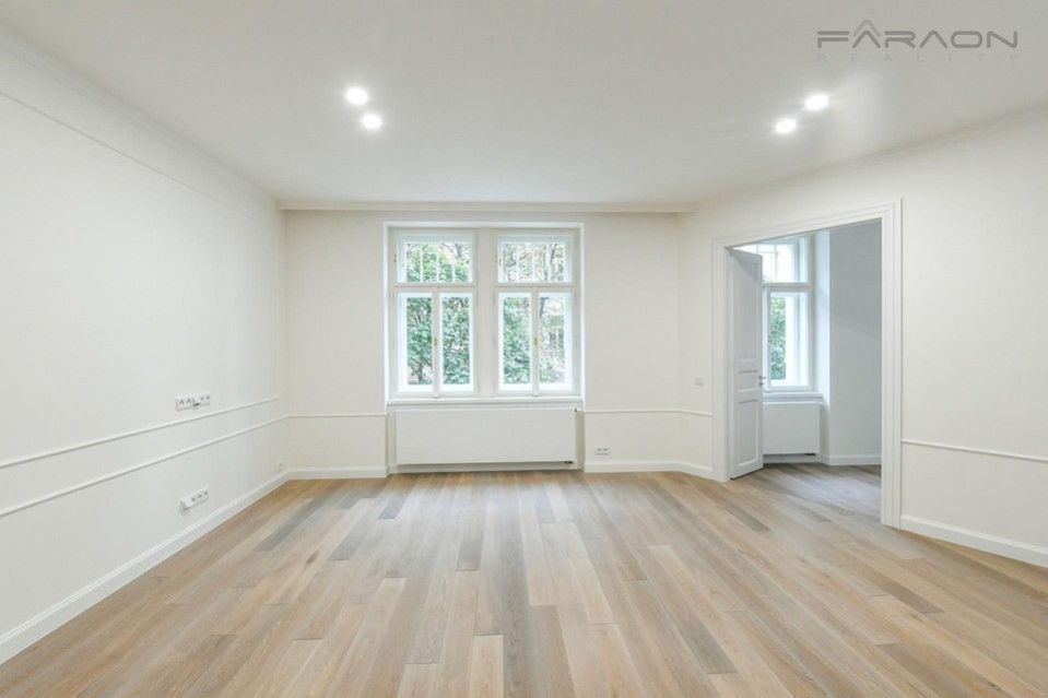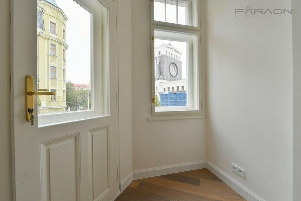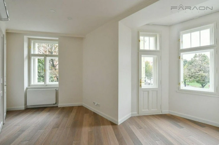 Rent of a completely luxurious and above-standard and fully equipped air-conditioned apartment 4kk (142m2) with balcony, parking space included in the rent in an extremely attractive location near Jiřího z Poděbrad square on the 5th floor of a completely renovated Art Nouveau apartment building with a lift, with preserved original elements. An attractive and sought-after location right on Jiřího z Poděbrad square, a minute's walk from the metro (metro station A Jiřího z Poděbrad) and tram lines, with all civic amenities on site.