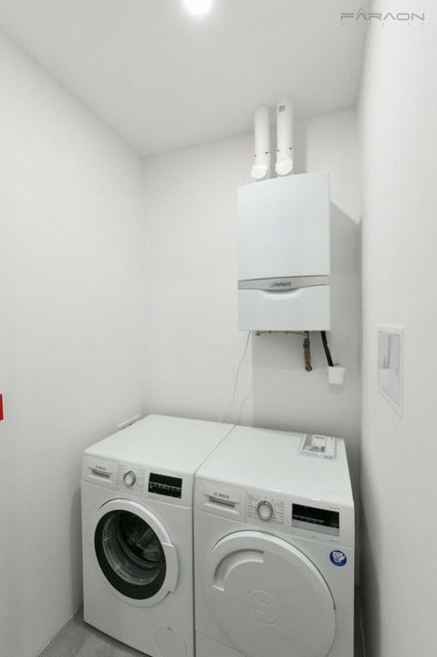 The interior of the apartment consists of an open concept living room with a fully equipped kitchen and dining area, a master bedroom with a dressing room and a fully equipped en-suite bathroom, a second bedroom with a bathroom with a shower, a guest toilet, a utility room - a washing machine, a dryer and a spacious entrance hall.