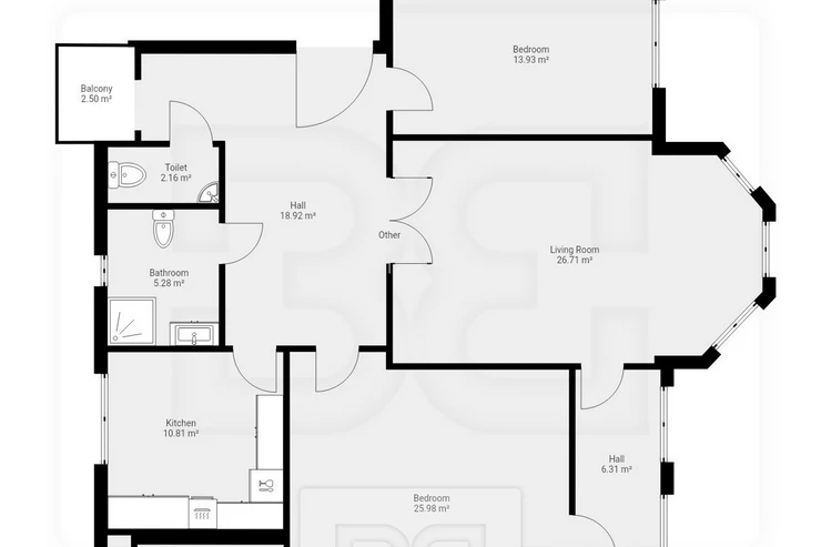 The layout consists of three separate rooms measuring 13 m², 26 m², and 25 m². There is also a smaller room of 4 m², which can be used as a home office, walk-in closet, or storage space.
