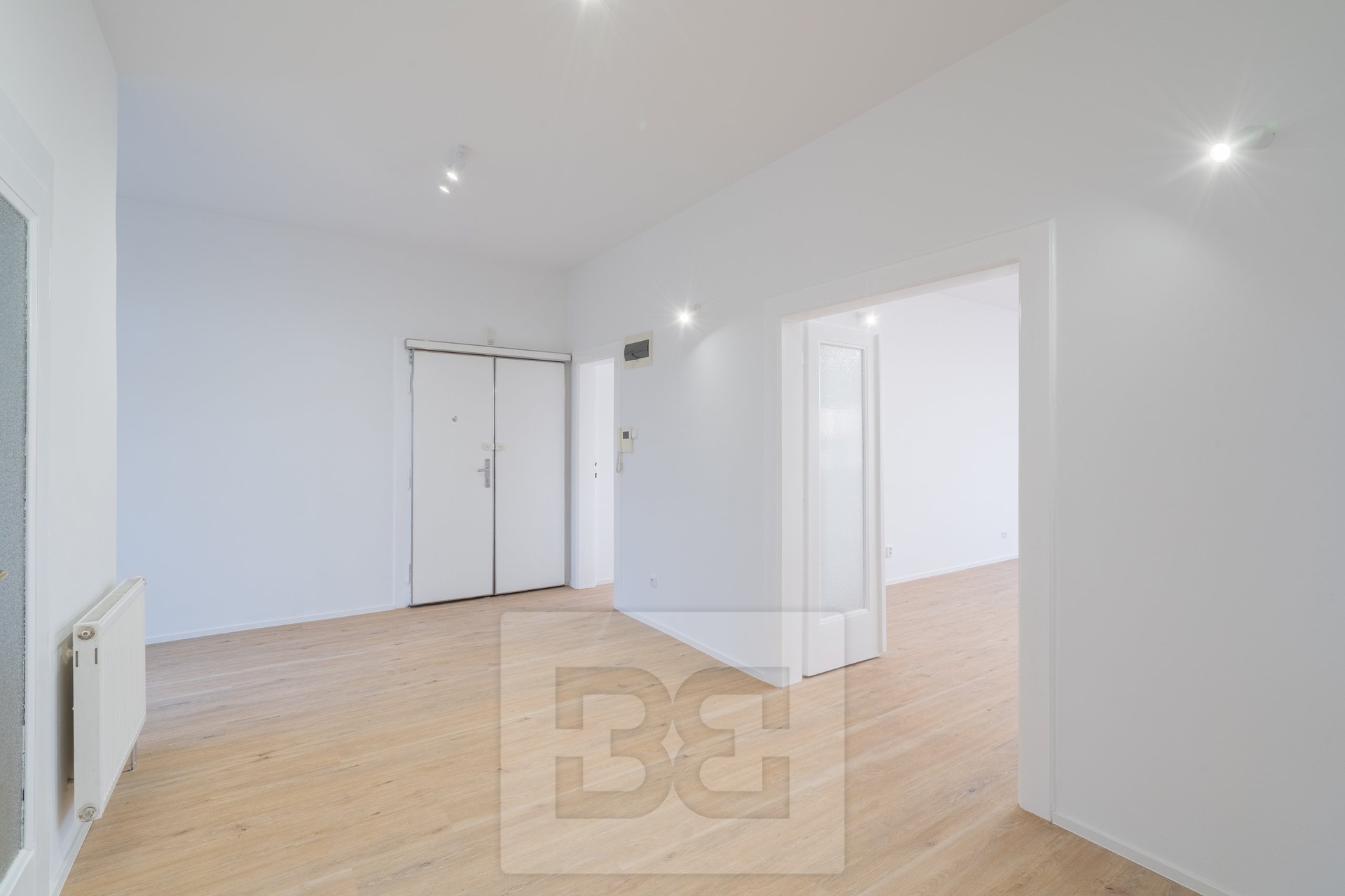 The apartment has undergone a complete renovation, and high-quality vinyl flooring has been installed throughout the interior.