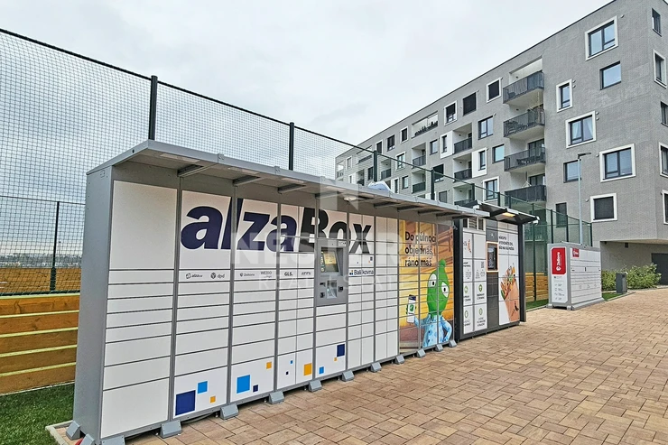 4. Convenient services nearby – Alza lockers, Zásilkovna, and Rohlík boxes right by the building.