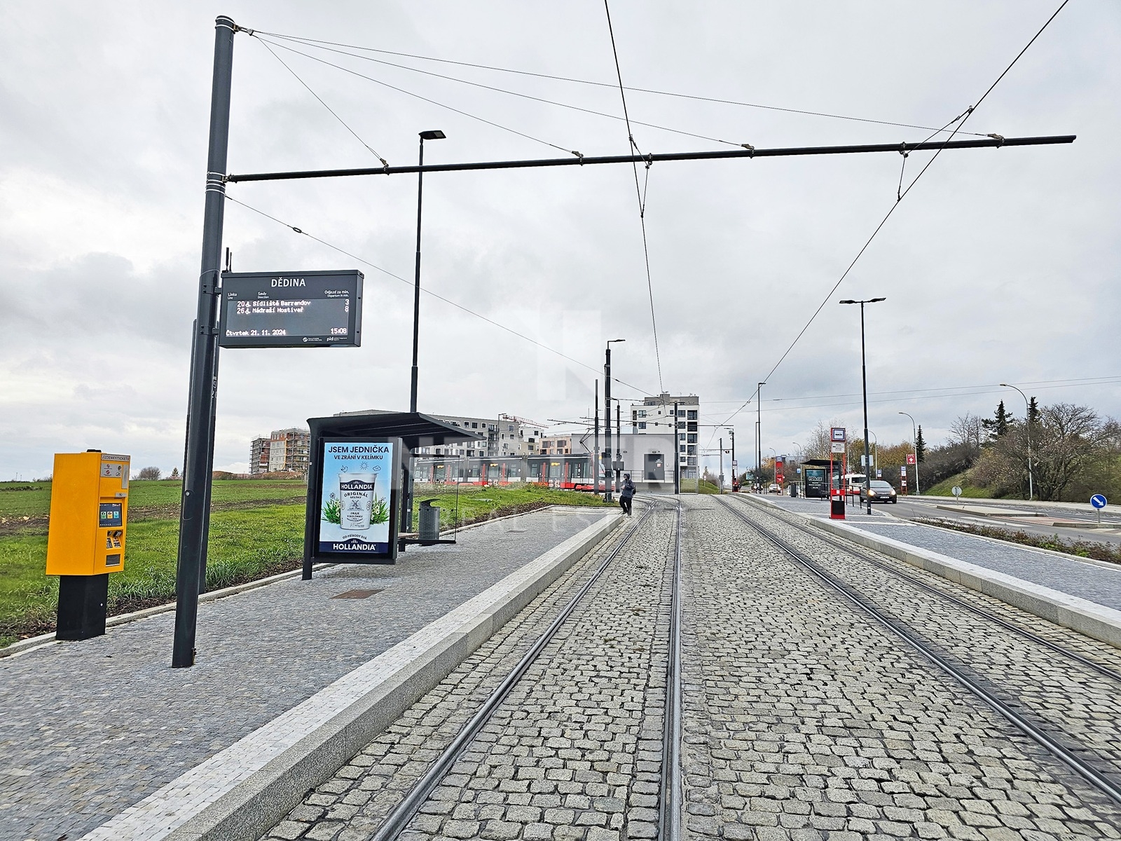 Excellent transport connections are ensured by the new tram line, with the Dědina tram stop just a 1-minute walk from the building. The tram takes you to the A metro line (Veleslavín station) in just five stops. A bus line is also available (35 minutes to Anděl). By car, the nearby Prague Ring Road allows quick access to any part of the city. Václav Havel Airport is only a 5-minute drive away.