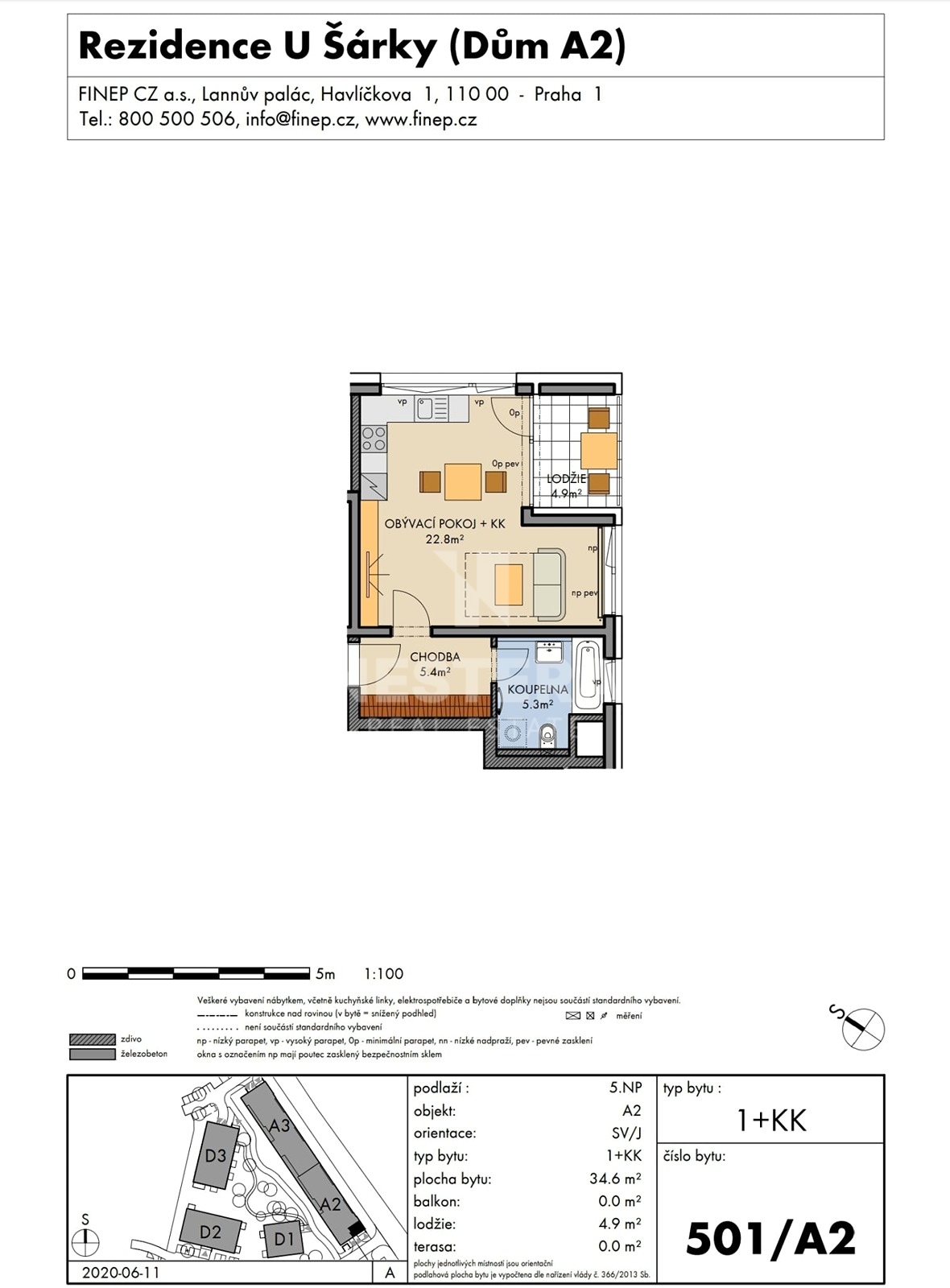 We offer for rent a modern 1+kk apartment with an area of 40 m², featuring a loggia and parking space in the new residential project Byty u Šárky by FINEP (completed in 2023). The apartment is located on the 5th floor (out of 6).
