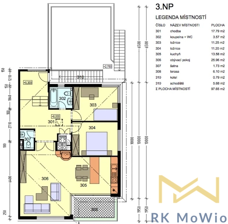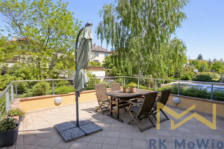 We offer for rent a high-quality, fully furnished 2-bedroom apartment with a floor area of 98 sqm, a 35 sqm terrace, and a 6.1 sqm balcony, situated on the 2nd floor (3rd above-ground level) of a modern family house without an elevator in a quiet residential area of Prague 5 – Jinonice.