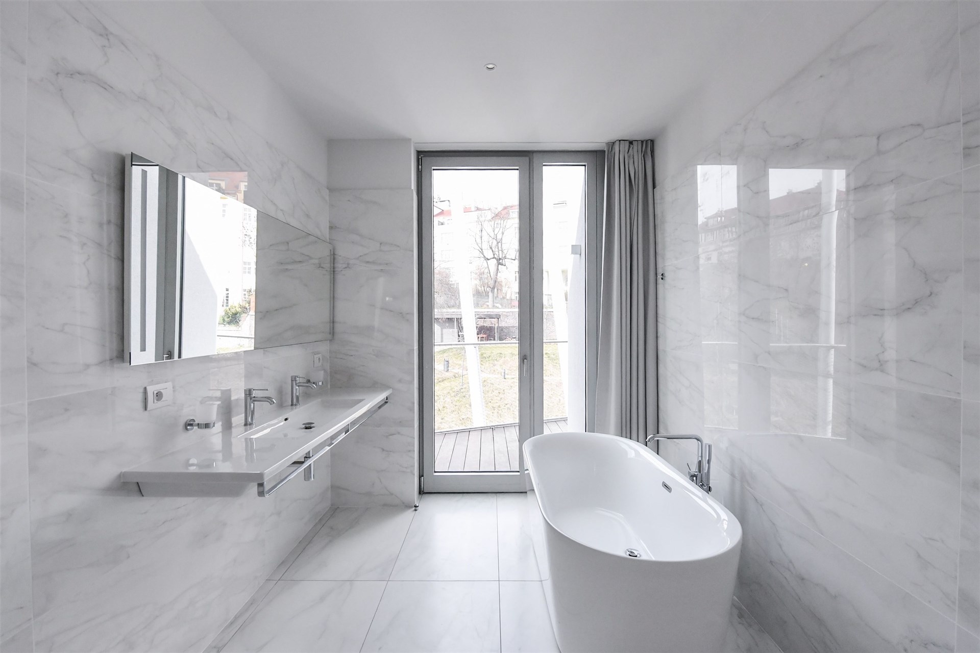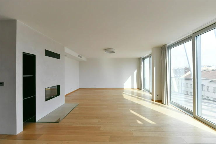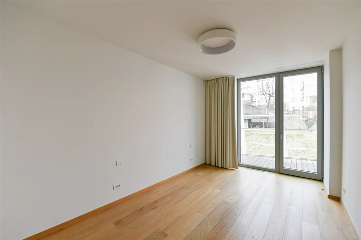 The apartment is offered unfurnished, however, it includes a fully equipped kitchen, bed linen, towels, internet, air conditioning, and modern technology including air recovery. Regular cleaning twice a month is also included in the rent. It is possible to rent a cellar space (approx. 6 m²).